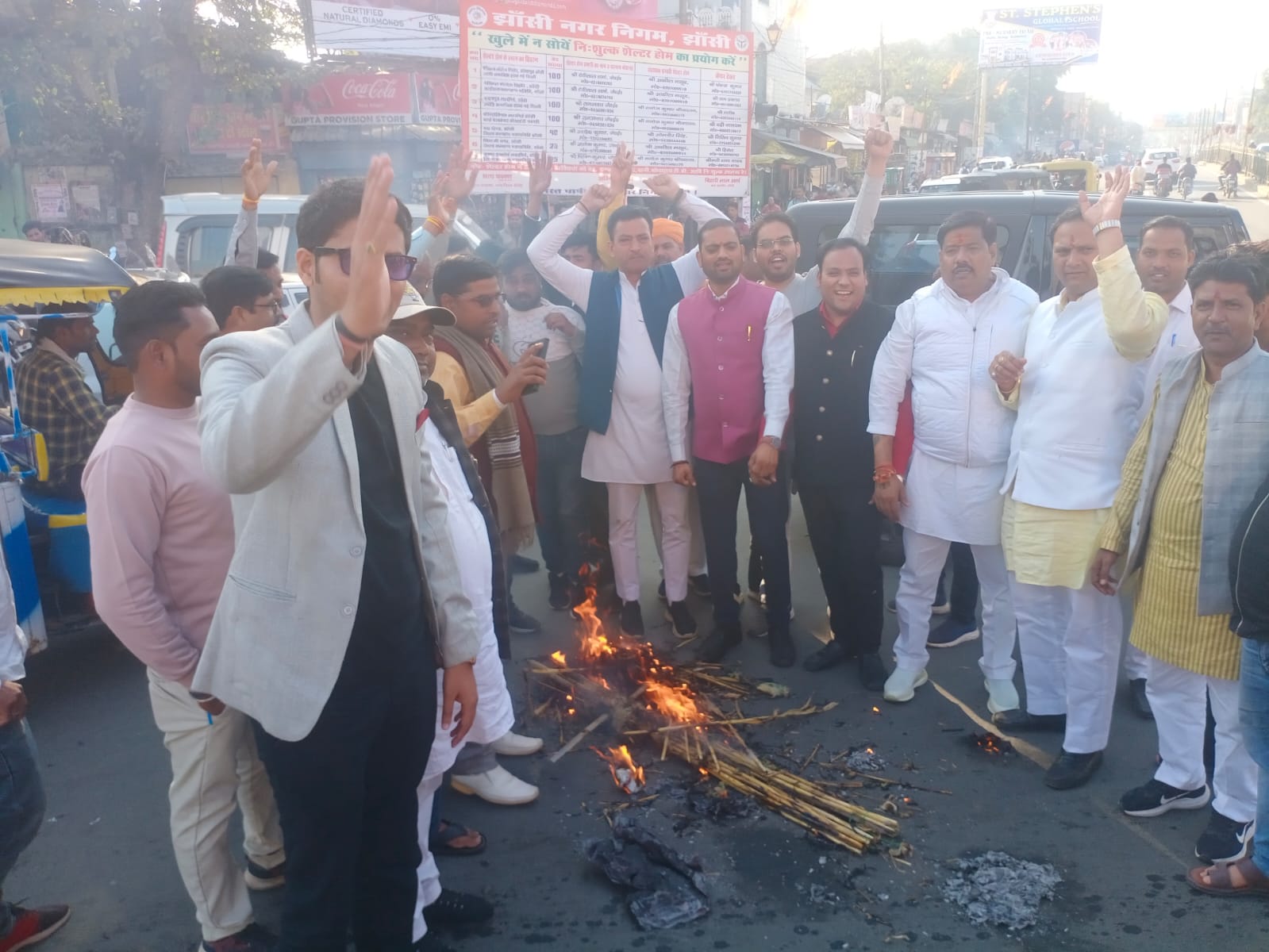 झांसी। देश के प्रधान मंत्री पर जाति टिप्पड़ी करने पर भाजपा कार्यकर्ताओं ने रोष प्रकट करते हुए राहुल गांधी के खिलाफ जमकर नारेबाजी कर पुतला जलाया।शुक्रवार को इलाईट चौराहे भाजपा के पूर्व जिलाध्यक्ष मुकेश मिश्रा सहित दर्जनों कार्यकर्ताओं और भाजपा पिछड़ा वर्ग मोर्चा ने राहुल गांधी द्वारा प्रधानमंत्री नरेंद्र मोदी पर की गई जाति टिप्पडी को लेकर जमकर आक्रोश वक्त करते हुए राहुल गांधी के खिलाफ नारेबाजी की ओर पुतला जलाया। इस दौरान अमित साहू, नरेंद्र नीलू रक्सा, रोहित गोठनकर सहित दर्जनों लोग उपस्थित रहे।