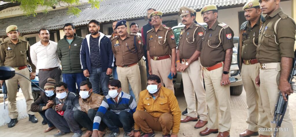 झांसी। मध्य प्रदेश और उत्तर प्रदेश में लगातार राहजनी, लूट जैसी वारदातों को अंजाम देने वाले अंतर्राजिय बदमाशों के गिरोह के पांच सदस्यों को झांसी की एसओजी, मोठ, पूछ, और एरच थाना की संयुक्त टीम ने दबोच लिया। पुलिस टीम ने पकड़े गए बदमाशों के कब्जे से लग्जरी गाडियां, मोबाइल फोन, तमंचा कारतूस सहित लूट का माल बरामद किया है। पकड़े गए बदमाशों का काफी बड़ा अपराधिक इतिहास है। शुक्रवार को पुलिस लाइन में आयोजित पत्रकार वार्ता के दौरान एसपी देहात नेपाल सिंह ने जानकारी देते हुए बताया की कानपुर देहात, जालौन, झांसी, मोठ, सिमरा, ललितपुर, मध्यप्रदेश के जिला दतिया, शिवपुरी, महौबा आदि जिलों में हाईवे पर राहगीरों को रोक कर डरा धमका कर लूट डकैती की घटना को एक गिरोह द्वारा लगातार अंजाम दिया जा रहा था। इस गिरोह को दबोचने के लिए एडीजी कानपुर जोन के निर्देशन पर डीआईजी जोगेंद्र सिंह, एसएसपी राजेश एस के नेतृत्व में झांसी एसओजी, सर्व लांस, मोठ, पूछ और एरच थाना पुलिस की टीम हाईवे पर लगातार इनकी तलाश में लगी थी। तभी देर रात एरच में मीर साहब की मजार के पास खड़ी एक लग्जरी स्कॉर्पियो गाड़ी में बैठे कुछ संदिग्धों को हिरासत में लेकर उनसे पूछताछ की तो उन्होंने हाईवे पर लूट डकैती की घटनाओं को अंजाम देने का जुर्म स्वीकार किया। पुलिस टीम ने उनके कब्जे से अलग अलग स्थानों से लूट के 95 हजार की नकदी, दो तमंचा सात कारतूस, चार मोबाइल फोन, एक एक्सायुव कार, दो बंडल आला नकब बरामद कर लिए। पूछताछ में पकड़े गए आरोपियों ने अपने नाम गयापाल निवासी कबराई महोबा, छोटेलाल कुशवाह निवासी मौदहा हमीरपुर, नरेंद्र पाल निवासी कबरई महोबा, सुंदर कुशवाह निवासी गांधी गंज मऊरानीपुर, अजय कुशवाह निवासी करवाई महोबा बताया। वही उनके दो साथी मौके से भाग गए जिनके नाम महेंद्र पाल, बाबूराम निवासी करवाई बताए गए। पुलिस टीम भागे गए दोनो बदमाशों की तलाश कर रही है। वही एसपी देहात ने शातिर बदमाश गिरोह को दबोचने वाली एसओजी और एरच थाना पुलिस को पुरस्कृत करने की घोषणा की है।बदमाशों को पकड़ने में यह टीम रही शामिलअशोक कुमार उपाध्याय प्रभारी निरीक्षक एरच थाना, संजय कुमार गुप्ता प्रभारी निरीक्षक मोठ, कुलभूषण सिंह एसओजी टीम प्रभारी,सुरेंद्र प्रताप सिंह थानाध्यक्ष पूछ, उपनिरीक्षक सत्यनारायण, रोहित सिंह, कांस्टेबल अजय वर्मा, अभिषेक सिंह, आदेश कुमार, हरवीर सिंह, बिपिन पाल, दुर्गेश चौहान, अजय कुमार, देवेश चतुर्वेदी, सागर बाबू, धारा सिंह, मुरारी त्रिवेदी, रजत सिंह, राजेश सिंह मोजूद रहे।