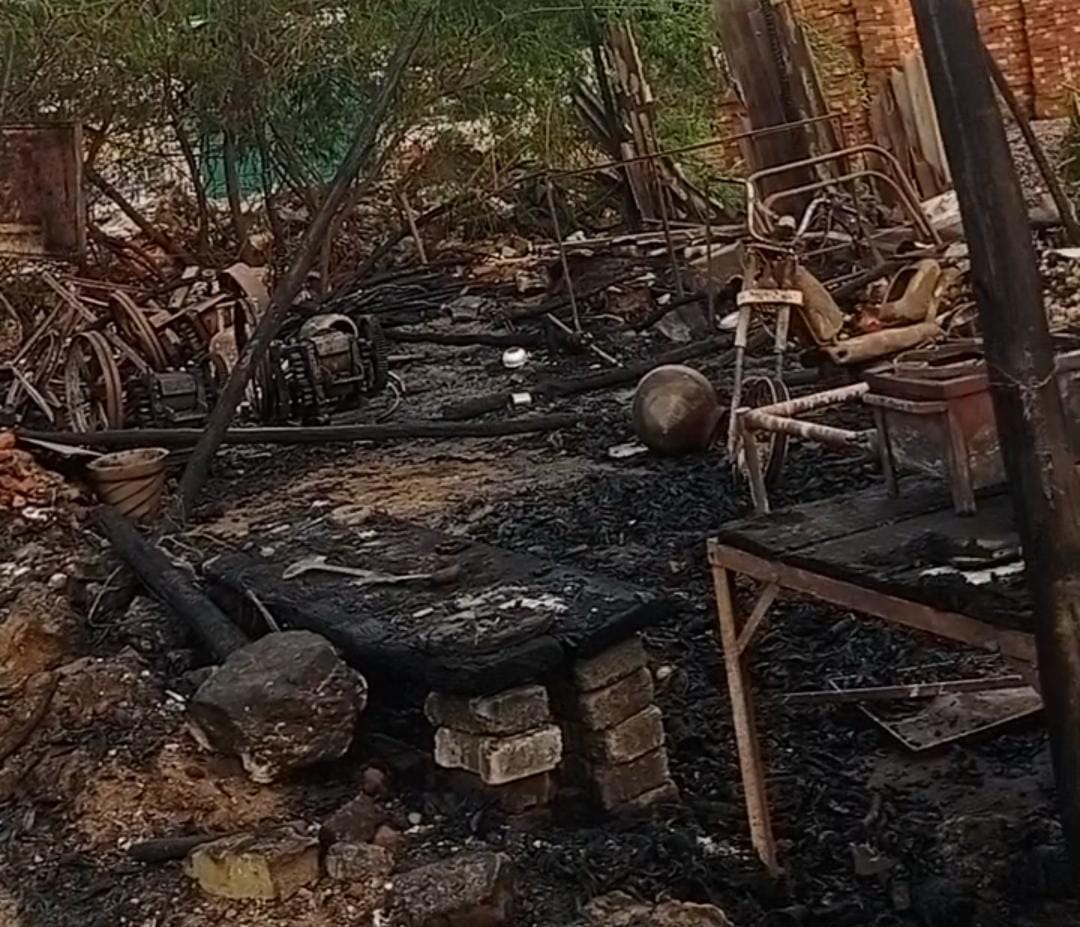 नगरा हाट का मैदान में गुमटी में लगी आग से बाइक सहित लाखों का माल जलकर राख