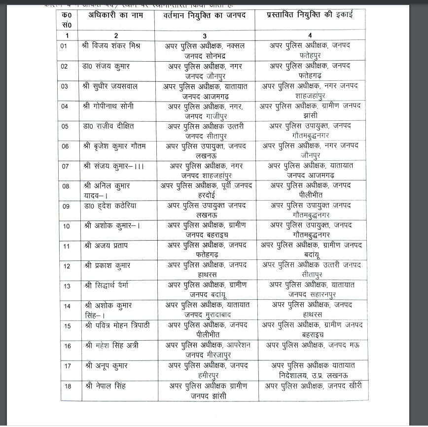 झांसी। शासन ने आज दो दर्जन से अधिक पुलिस अधीक्षकों के कार्यक्षेत्र में फेर बदल कर दिया। इसी क्रम ने झांसी पुलिस अधिक्षक राधश्याम को लखनऊ निदेशालय वही पुलिस अधीक्षक ग्रामीण नेपाल सिंह को खीरी भेजा। इनके स्थान पर गोपी नाथ और ज्ञानेंद्र को भेजा है।