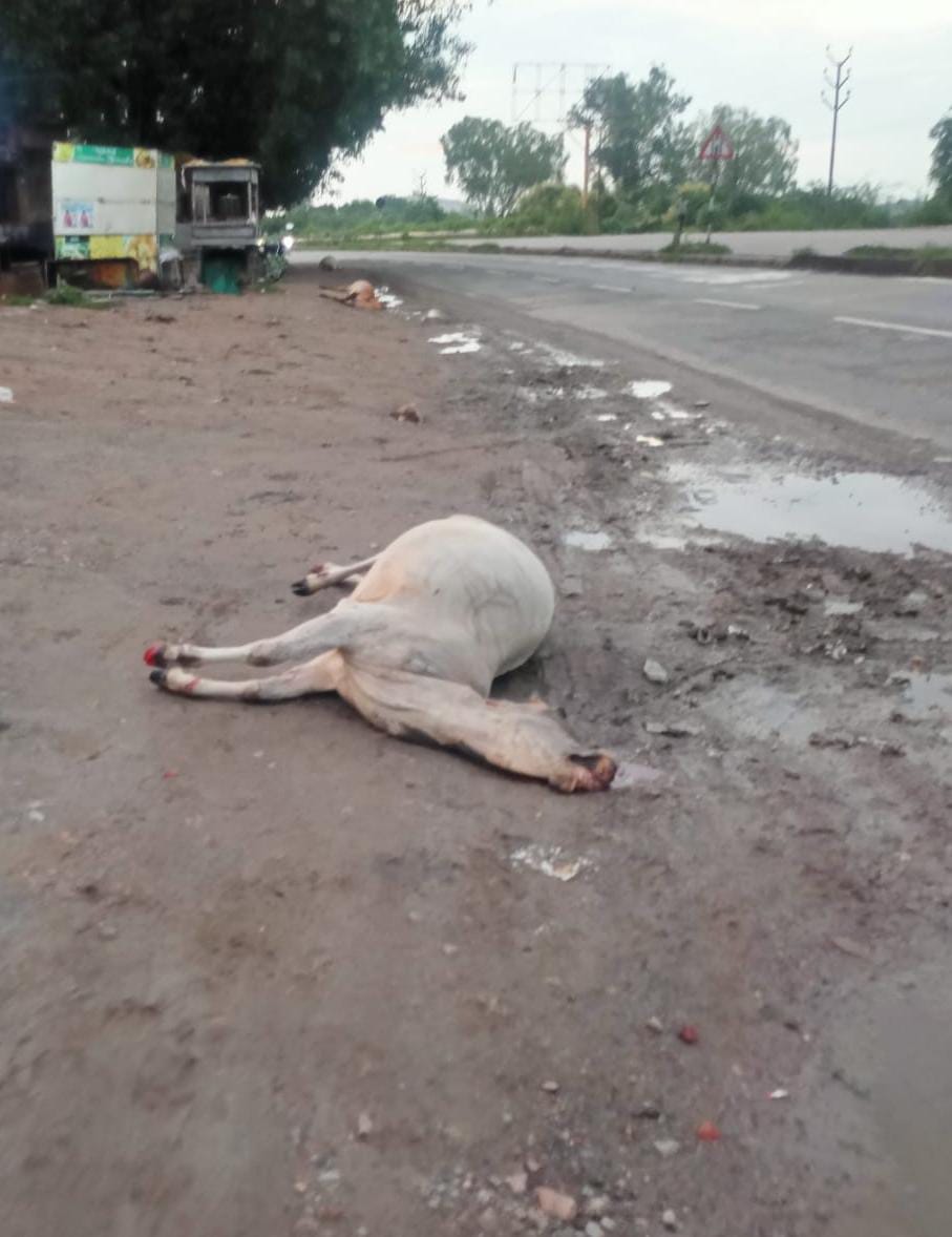 कानपुर हाईवे पर अलग अलग स्थानों पर आधा दर्जन अन्ना जानवरों को कुचला