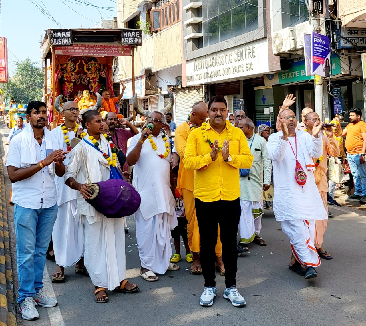 झांसी। भगवद् वाणी का प्रचार करने व्रंदावन से शुरू हुई इस्कान की हरिनाम संकीर्तन पदयात्रा ने सोमवार को महानगर में भ्रमण किया। श्रद्धालुओं ने पुष्प वर्षा कर भव्य स्वागत किया। यह संकीर्तन पदयात्रा कार्तिक मास में झाँसी के ग्रामीण इलाकों में भी हरिनाम संकीर्तन कर भगवद गीता का प्रचार प्रसार करेगी।श्रील प्रभुपाद जी के जन्म शताब्दी वर्ष पर श्रील लोकनाथ स्वामी महाराज ने विश्व के 108 संकीर्तन पदयात्रा का आयोजन किया। इसी क्रम में उत्तर प्रदेश संकीर्तन पदयात्रा का सोमवार को नगर में आगमन हुआ । आतिया तालाब स्थित राधाबाई के स्मारक पर भव्य स्वागत किया। यहां श्रील प्रभुपाद ने 70 वर्ष पूर्व 1952 में भक्ति संघ की स्थापना की थी। पदयात्रा में सुन्दर काठियावाड़ी रथ पर भगवान चैतन्य महाप्रभु, नित्यानंद प्रभु के दिव्य विग्रह व श्रील प्रभुपाद जी की मूर्ति विराजमान थी। म्रदंग के मधुर स्वर के मध्य हरे रामा हरे कृष्णा महामंत्र के बीच पदयात्रा महनगर में भ्रमण कर इस्कान मंदिर में पहुँची। संकीर्तन पदयात्रा के प्रभारी ऋतुदास ब्रह्मचारी ने बताया कि संपूर्ण कार्तिक मास में संकीर्तन पदयात्रा झांसी में रहकर हरिनाम का प्रचार करेगी। इस अवसर पर नगर विधायक रवि शर्मा, मंदिर अध्यक्ष ब्रजभूमि दास प्रभु, पीयूष रावत, रमेश राय, अजय अग्रवाल,करुणा सिंधु दास,चंद्रभान दास, हनुमान दास,अंकित सोनी, आर के टेलर्स आदि मौजूद रहे।