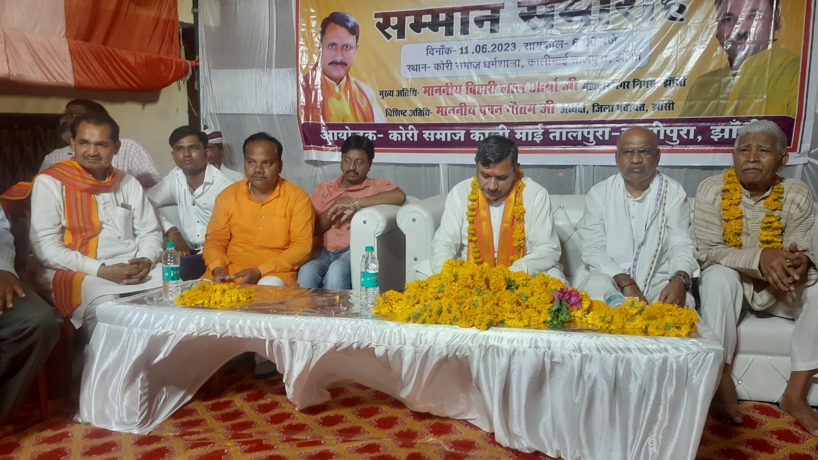 झांसी। सोमवार को कालीमाई तालपुरा कोरी समाज धर्मशाला झांसी में संत शिरोमणि सद्गुरु कबीर साहेब जी के 626 वें प्राकट्य दिवस के शुभ अवसर पर आयोजित सम्मान समारोह में बिहारीलाल आर्य महापौर नगर निगम झाँसी के मुख्य आतिथ्य में एंव पवन गौतम जिला पंचायत अध्यक्ष झांसी के बिशिषट आतिथ्य में तथा काशीराम मुखिया की अध्यक्षता में एंव अखिल भारतीय कोरी/कोली महासभा उत्तर प्रदेश के प्रदेश अध्यक्ष इंजीनियर मोहन लाल सिंगरया-ऐडवोकेट के बिशिषट आतिथ्य में सम्मान समारोह सम्पन्न हुआ। जिसमें माननीय महापौर बिहारीलाल आर्य जी को श्री ठाकुर दास वर्मा जी ने माला पहनाकर स्वागत किया एंव पवन गौतम जिला पंचायत अध्यक्ष को उमाशंकर भासने ने माला पहनाकर स्वागत किया। इसी क्रम में बरिषट समाज सेवी एंव कोरी महासभा के प्रदेश अध्यक्ष इंजी.मोहनलाल सिंगरया-ऐडवोकेट को जमुना प्रसाद केशरी ने माला पहनाकर स्वागत किया। इस सम्मान समारोह में सभी कोरी समाज के पार्षद गणों एंव समाज सेवियों को भी सम्मानित किया गया। इस कार्यक्रम में बरिषट नेता माननीय संतराम पेंटर के अलावा समाज के और अन्य समाज के समाज सेवियों को भी सम्मानित किया गया। इस कार्यक्रम का संयुक्त संचालन तुलसीदास चंदेरया एंव गोपाल कोरी ने किया। इस कार्य क्रम में मुख्य रूप से बाल्मिक वर्मा, जगदीश बाबू,किशोर वर्मा, जुगल किशोर वर्मा ऐडवोकेट,रमेश मचछे,अनिल कुमार पचचू, तरूण आर्य, श्रीमती राजकुमारी,चतुर्भुज ठेकेदार, लक्षमन प्रसाद,मनोज कुमार, नरेंद्र कुमार, मोतीलाल, रामदयाल, प्रियंका पत्रकार आदि लोग उपस्थित रहे।
