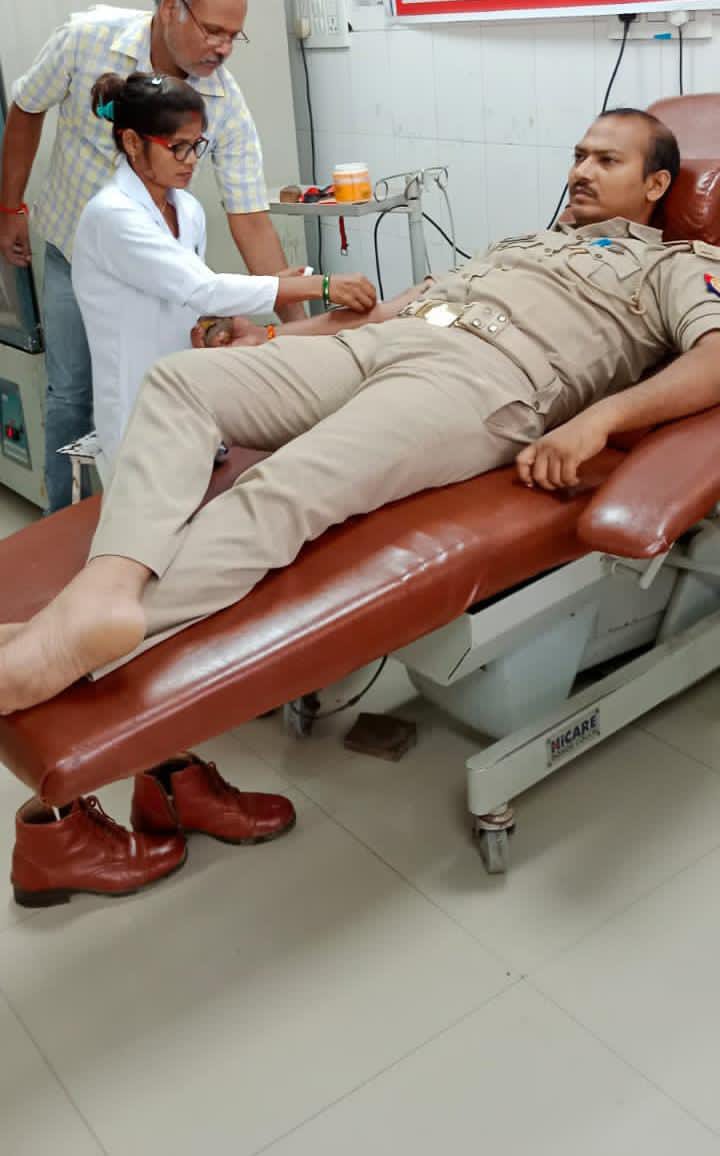 झांसी। जहां एक और पूरी दुनिया आजादी के 75 वी वर्ष गांठ मानने के जश्न में डूबा था। वही दूसरी ओर एक मरीज को रक्त की अत्यंत आवश्यकता थी। जिसकी सूचना मिलते ही तत्काल दरोगा संबंधित हॉस्पिटल पहुंचे और अपना रक्त दान कर मरीज की जान बचाई।जानकारी के मुताबिक बरूआ सागर थाना में तैनात दरोगा पवन जायसवाल को आज सूचना मिली की एक मरीज को अत्यंत रक्त की जरूरत है। सूचना मिलते ही दोपहर समय दरोगा तत्काल अस्पताल पहुंचे और मरीज को अपना रक्त दान कर उसकी जान बचाई। दरोगा के इस सराहनीय कार्य की तसवीर किसी ने शोशल मीडिया पर वायरल कर दी। दरोगा के नेक कार्य की लोग काफी प्रशंसा कर रहे है।