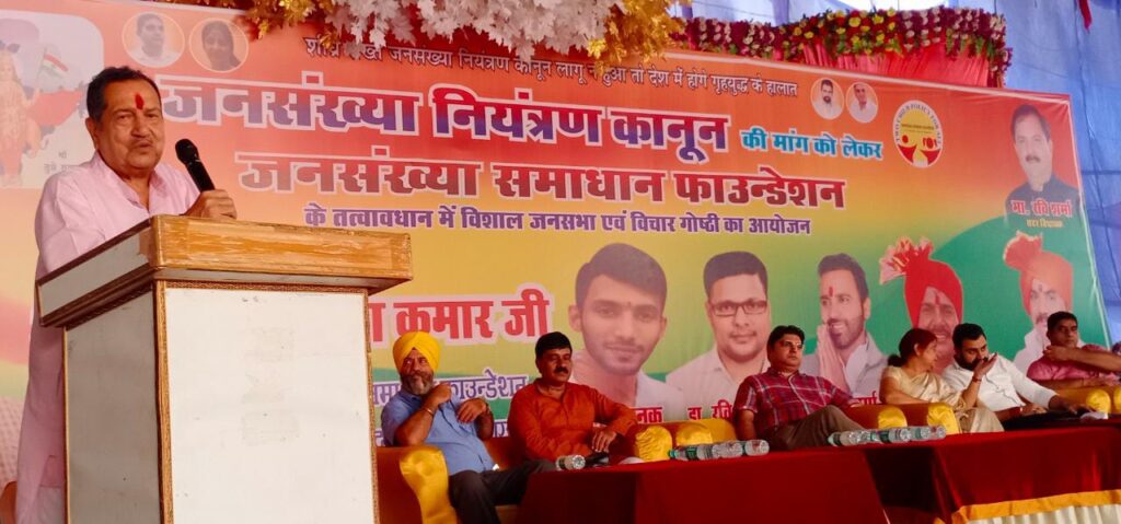 झांसी। जनसंख्या नियंत्रण कानून बनाने की मांग को लेकर विशाल जनसभा का आयोजन किया गया। जिसमे जनसंख्या फाउंडेशन ने विशाल जनसभा में विचार व्यक्त किए गए।रविवार को सिद्धेश्वर गार्डन में आयोजित जनसंख्या नियंत्रण कानून बनाने की मांग को लेकर जनसंख्या समाधान फाउंडेशन के तत्वावधान में विशाल जनसभा/विचार गोष्ठी का आयोजन किया गया।