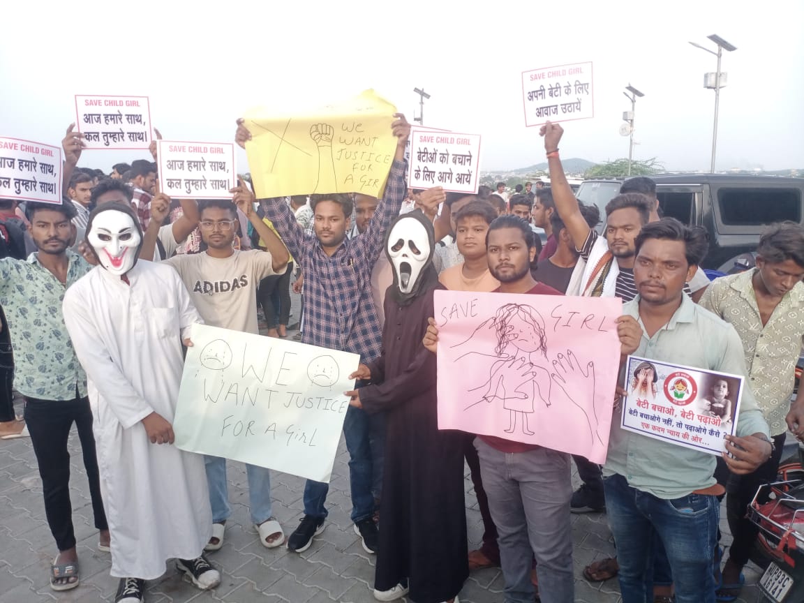 मासूम के साथ बलात्कार के आरोपी को फांसी की मांग को लेकर सैंकड़ों युवा सड़कों पर उतरे