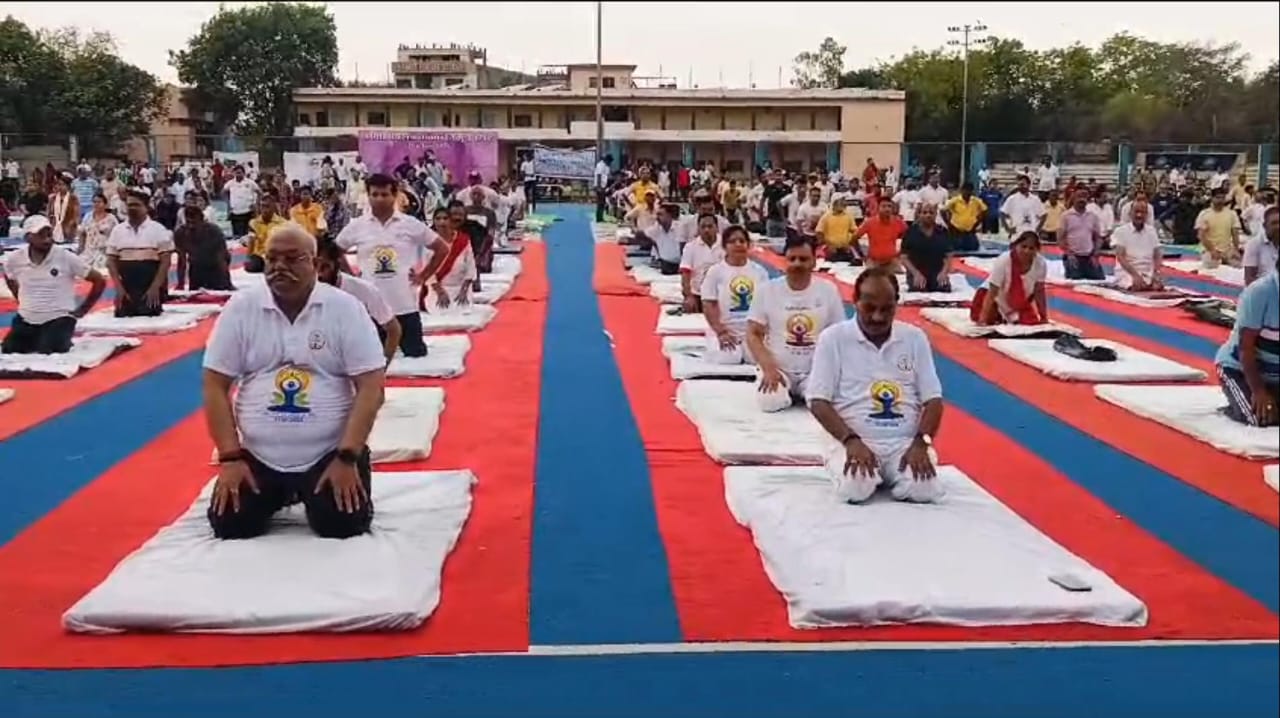 झांसी। अंतर्राष्ट्रीय विश्व योग दिवस पर झांसी में आयोजित कार्यक्रम में उत्तर प्रदेश सरकार के जेल मंत्री और विधान परिषद सभापति शामिल हुए और उन्होंने जनता से अपील करते हुए कहा कि आज के दौर में योग बहुत जरूरी है। योगा करने से तन मन स्वास्थ्य रहता है। शुक्रवार को देश भर में मनाया जा रहा विश्व योग दिवस पर ध्यान चंद्र स्टेडियम में भी योगाभ्यास कराया गया। इस कार्यक्रम में उत्तर प्रदेश सरकार के जेल मंत्री दारा सिंह और उत्तर प्रदेश विधान परिषद के उपसभापति कुंवर मानवेंद्र प्रताप सिंह मुख्यरूप से उपस्थित हुए। वही जिला प्रशासन में कमिश्नर, डीआईजी, जिलाधिकारी और एसएसपी सहित समस्त जिले के अधिकारी और कर्मचारी सहित पुलिस बल ने योगाभ्यास कार्यक्रम में भाग लिया। वही समाजसेवी नीतिशास्त्री सहित कई भाजपाई और समाजसेवी उपस्थित हुए। हजारों की संख्या में झांसी वासियों ने इस योगाभ्यास कार्यक्रम में भाग लिया। इस दौरान कार्यक्रम में उपस्थित उत्तर प्रदेश विधान सभा उपसभापति कुंवर मनावेंद्र प्रताप सिंह ने कहा कि शरीर को स्वस्थ रखने के लिए सबसे सरल उपाय योग है। उन्होंने कहा करो योग रहो निरोग, उन्होंने कहा कि आज की युवा पीढ़ी पश्चात सभ्यता की ओर बढ़ रही है नई युवा पीढ़ी भूलती जा रही है। उन्होंने कहा कि जब तक शरीर स्वास्थ्य नही तो दौलत शोहरत सब बेकार है। इसलिए करो योग रहो निरोग। वही उत्तर प्रदेश सरकार के जेल मंत्री ने कहा कि बिना योग सब बेकार है। स्वास्थ्य और सुंदर रहना है तो योग जरूरी है। उन्होंने कहा कि यह विश्व योग दिवस देश के प्रधान मंत्री नरेंद्र मोदी के अथक प्रयासों से शुरू हुआ। उन्होंने बताया वर्ष 2014 में इसका प्रस्ताव रखा गया था और उसी समय इसे पास किया गया था। तब से विश्व योग दिवस मनाया जाता है। उन्होंने उत्तर प्रदेश और देश की जनता से अपील करते हुए कहा कि तन मन को स्वस्थ रखना है तो योग जरूर करें।