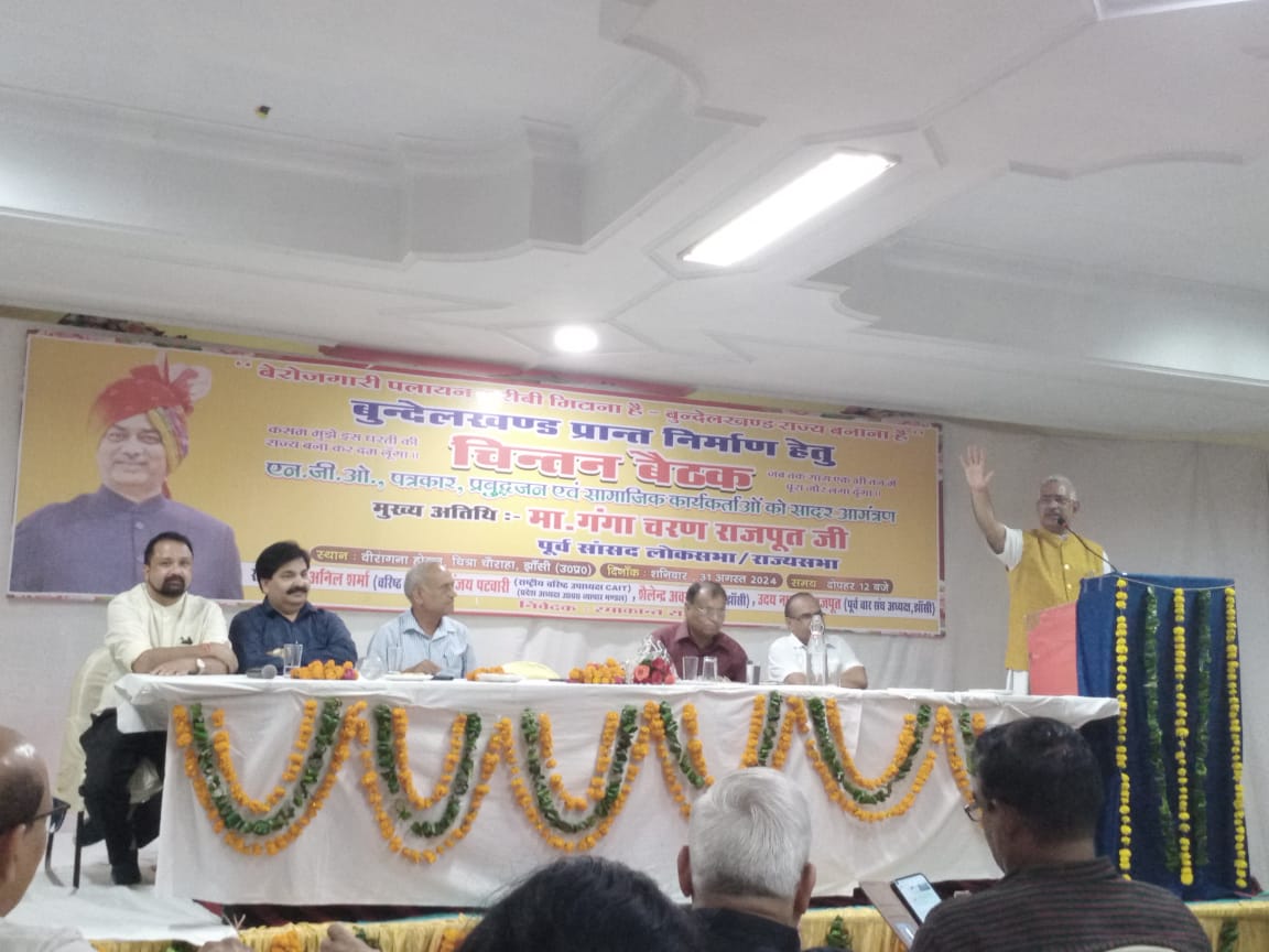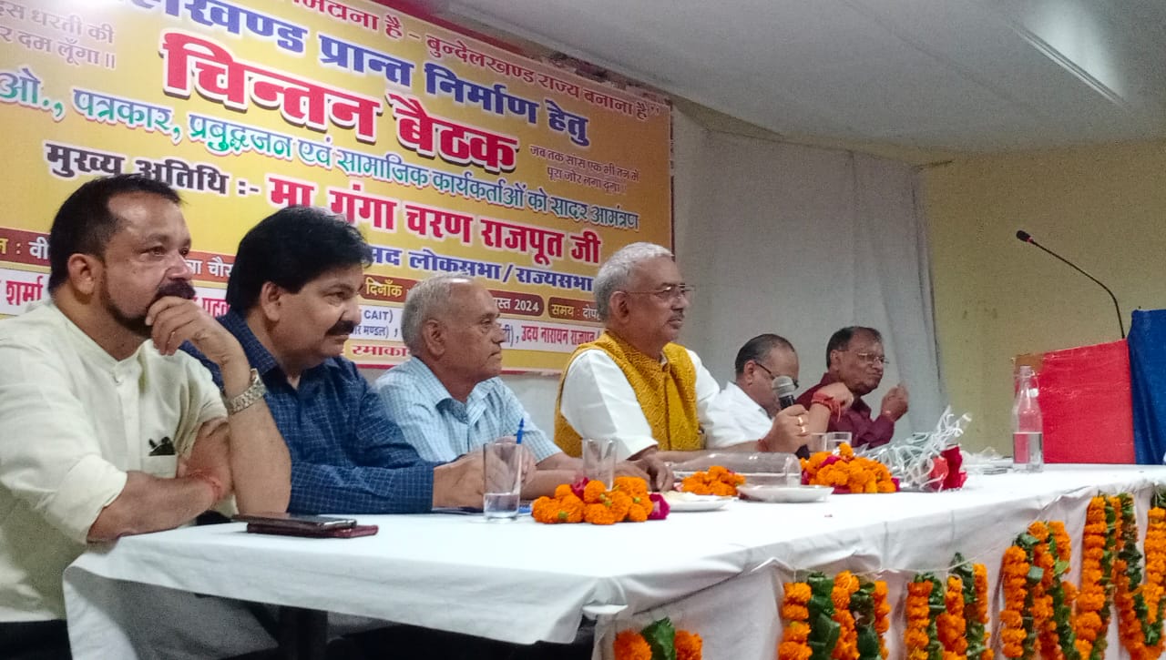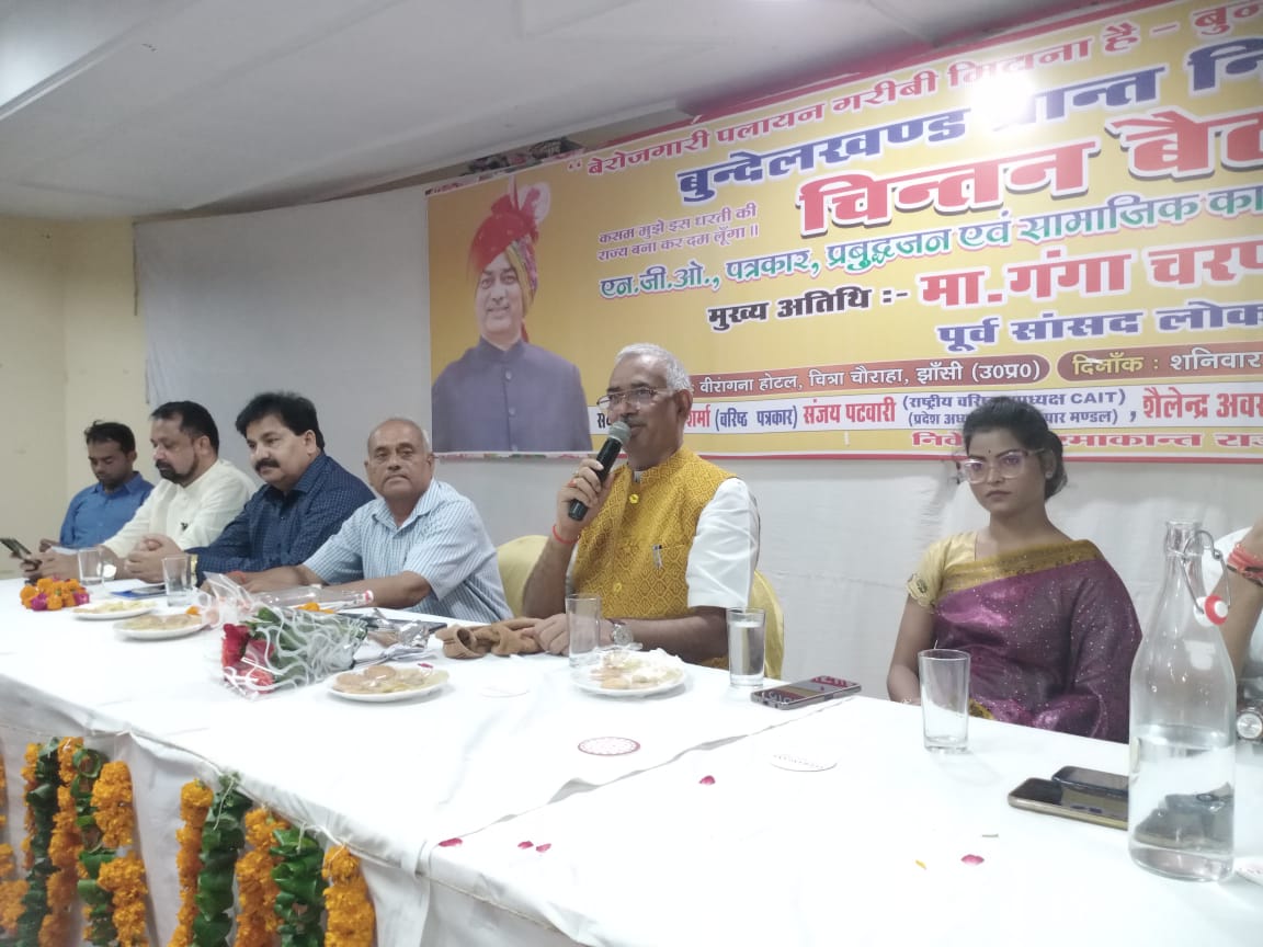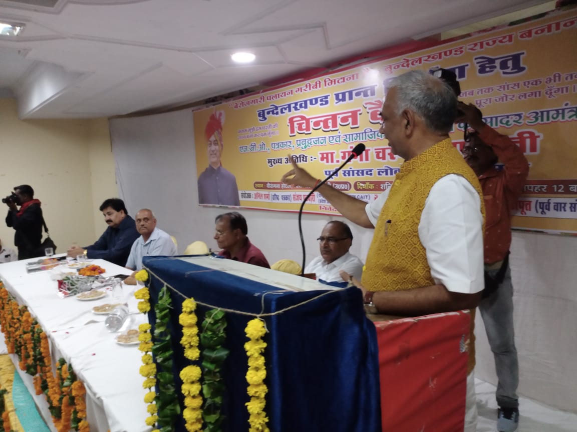 झांसी। अवैध खनन पर्यावरण, नदी, तालाब, संपदा को नष्ट कर रहा है, ओर यह नही होंगे तो बुंदेलखंड में बेरोजगारी के हालत बने रहेंगे। अगर इन सब से छुटकारा पाना है तो बुंदेलखंड राज्य प्रांत बनावाओं। यह बात पूर्व राज्य सभा सांसद गंगा चरण राजपूत ने बुंदेलखंड प्रांत निर्माण हेतु आयोजित की गई बैठक/चिंतन में कही। शनिवार को पूर्व सांसद गंगा चरण राजपूत द्वारा होटल बिरंगना में आयोजित की गई बैठक/ चिंतन बुंदेलखंड प्रांत निर्माण के लिए पत्रकार, अधिवक्ता, व्यापारी, समस्त एनजीओ को आमंत्रित किया। इस दौरान बुंदेलखंड प्रांत निर्माण पर सभी ने चिंतन मनन करते हुए अपने अपने वक्तव्य रखे। वही गंगा चरण राजपूत ने कहा कि गरीबी, पलायन, बेरोजगारी मिटाना है तो बुंदेलखंड प्रांत बनाना है। उन्होंने कहा कि झांसी से बुंदेलखंड बनाने की आवाज इसलिए उठाई क्योंकि यह रानी लक्ष्मी बाई की नगरी है, क्रांतिकारियों, हॉकी के जादूगर की नगरी है। यहां से आवाज उठेगी और दिल्ली तक जाएगी। उन्होंने बुंदेलखंड की लड़ाई लड़ने वाले शंकर लाल मल्होत्रा का भी जिक्र किया। उन्होंने कहा हिंसा से कुछ नही मिलेगा। लोक तांत्रिक, जन मत से बुंदेलखंड राज्य मिलेगा। बुंदेलखंड प्रांत के लिए जात पात राजनीति सब छोड़ना पड़ेगा। हम सब लोगों को एक होकर माहौल बनाकर आंदोलन करना पड़ेगा। भाजपा के प्रतिनिधियों को भी शामिल करेंगे। भाजपा को याद दिलाएंगे 2014 में उमा भारती ने झांसी से बुंदेलखंड राज्य बनाने का वादा किया था। यह बात प्रधान मंत्री को याद दिलाएंगे। उन्होंने कहा रक्सा में हीरे की खदान मिली जिसकी सूचना से विदेशी कंपनी को ठेका मिला। शोशल मीडिया में बहुत बड़ी ताकत है, शोशल मीडिया पर बुंदेलखंड राज्य बनाने का आंदोलन चलाएंगे। हर व्यक्ति शोशल मीडिया पर प्रतिदिन एक पोस्ट डालेगा, बुंदेलखंड दो वोट लो तो यही आंदोलन राज्य बनवा देगा।किसान आत्मनिर्भर कैसे बने बुंदेलखंड राज्य पहला मुद्दा होगा और पानी कैसे बचे इस पर चिंतन होना जरूरी है और नदियों से निकलने वाला पानी रोकना चाहिए, लोक लैंड से खनन हो रहा अगर यही चलता रहा तो नदियों का पानी समाप्त हो जायेगा। पर्यावरण बचाना है, नदियों को बचाना है, संपदा बचाना है इन सब का एक ही इलाज बुंदेलखंड राज्य बनाना है। बुंदेलखंड राज्य बनेगा तो कोई बेरोजगार नही होगा। हमारा मुख्यमंत्री होगा, हमारा प्रशासन होगा।उन्होंने कहा की जब बुंदेलखंड राज्य बन जायेगा तो ओरछा, पन्ना, टीकमगढ़, खजुराहो आदि टूरिज्म क्षेत्र में आय का श्रोत बढ़ेगा किसी को कंडे नही थापने पड़ेंगे। उन्हीं बताया कि भाभी जी पर है के फेम हप्पू सिंह ने भी बुंदेलखंड राज्य निर्माण की मांग बुंदेली अंदाज मे करते की है। इस दौरान वरिष्ठ पत्रकार राम सेवक अड़जरिया, ध्रुव सिंह, अ