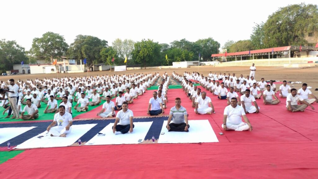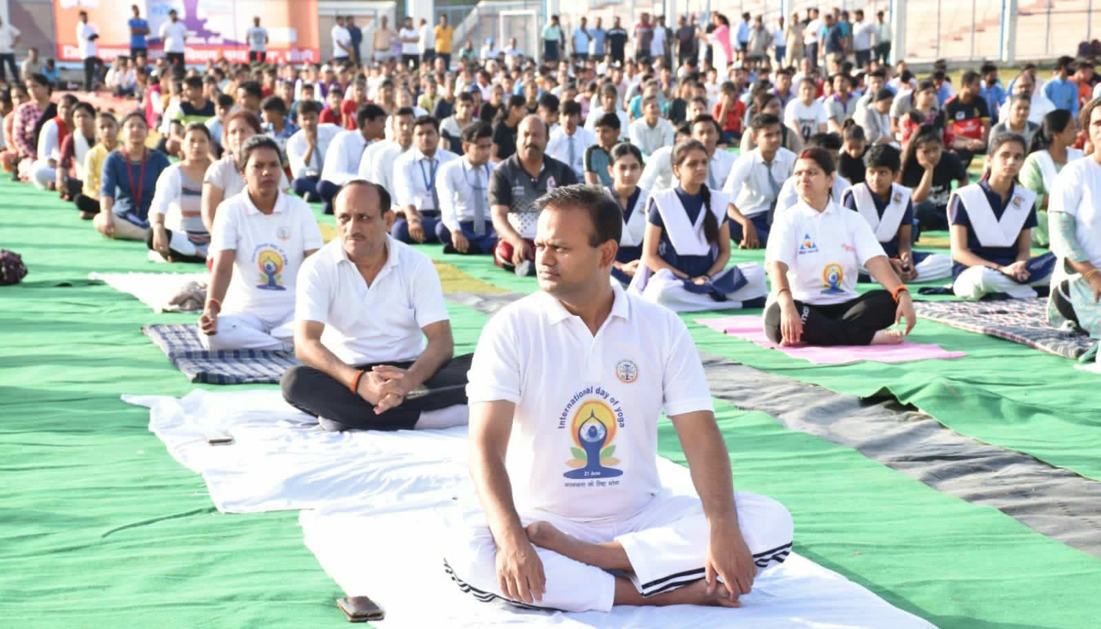 आज यह जन जागरण का अभियान जैसा रूप ले चुका है और योग से कसरत करने से शरीर स्वस्थ होता है। योग करने से जो अंदर से ताकत मिलती है उससे हम कोई भी असंभव काम कर सकते हैं, उन्होंने कहा की मैं अपनी ओर से अपनी सरकार की ओर से सरकार के यशस्वी मुख्यमंत्री योगी आदित्यनाथ की ओर से अपने देशवासियों को विशेष रूप से मैं झांसी मंडल के प्रभारी मंत्री के रूप में सभी निवासियों को योग दिवस की बहुत-बहुत शुभकामनाएं देता हूं। इस अवसर पर जिलाधिकारी रविंद्र कुमार ने अंतरराष्ट्रीय आठवें विश्व योग दिवस की जानकारी देते हुए योग के महत्व को बताया और कहा कि यम, नियम, आसन, प्राणायाम, प्रत्याहार, धारणा, ध्यान और समाधि अष्टांग योग योगा के आठ अंग है। जिसका अभ्यास हमारी भारतीय सभ्यता में हजारों वर्ष से किया जा रहा है और इसी का परिणाम है कि यहां शरीर,मन और आत्मा या इसे मन कर्म और वचन कहे, इसकी समानता में जोड़ दिया जाए, और यही सही अर्थ में योग है। योग का अर्थ है जोड़ मतलब एक साथ लाना, मतलब जो हम सोचते हैं जो हम बोलते हैं और जो हम करते हैं अगर यह तीनों एक साथ होंगे तो हमारे जीवन में और हमारे दिन प्रतिदिन के स्वास्थ्य में भी सकारात्मक असर पड़ता है। उन्होंने कहा कि आज 21 जून 2022 आठवां अंतर्राष्ट्रीय योग दिवस है। इसके थोड़ी से इतिहास में जाएं तो 2014 में माननीय प्रधानमंत्री जी ने पदभार ग्रहण करने के पश्चात ही अंतरराष्ट्रीय स्तर पर भारत की सभ्यता के इस अभिन्न अंग योग को योग दिवस में घोषित करने की मांग की थी। जिसका परिणाम है कि (यूनाइटेड नेशन) संयुक्त राष्ट्र संघ में 21 जून 2015 को सर्वप्रथम अंतरराष्ट्रीय योग दिवस घोषित किया और 2015 से प्रत्येक वर्ष 21 जून को योग दिवस मनाया जाता है पूरी दुनिया में मनाया जाता है। आज 21 जून 2022 है आठवां अंतरराष्ट्रीय योग दिवस है जिसमें प्रधानमंत्री, मुख्यमंत्री सहित गांव-गांव में शहर-शहर में हर एक जगह योगाभ्यास किया गया है। उन्होंने जनपद में अमृत महोत्सव के अंतर्गत आठवां अंतरराष्ट्रीय योग दिवस की जानकारी देते हुए बताया कि इसके पहले भी 14 जून से ही योग सप्ताह के अंतर्गत लगभग 01 सप्ताह से योगाभ्यास किया जा रहा है। इस अवसर पर उन्होंने लोगों से अपील करते हुए कहा कि सिर्फ आसन और प्राणायाम पर फोकस ना करें योगा के आठ अंग हैं नियम से अनुपालन करें तो शरीर मन हमेशा स्वस्थ रहेंगे। इस अवसर अधिकारीगण, जनप्रतिनिधिगण एवं कर्मचारी व अन्य लोग उपस्थित रहे।वही पुलिस लाइन में डीआईजी जोगेंद्र सिंह, एसएसपी शिवहरि मीना सहित सभी सर्किल के क्षेत्राधिकारी और थाना प्रभारी सहित पांच सौ पुलिस कर्मियों ने योग दिवस पर योगाभ्यास किया।