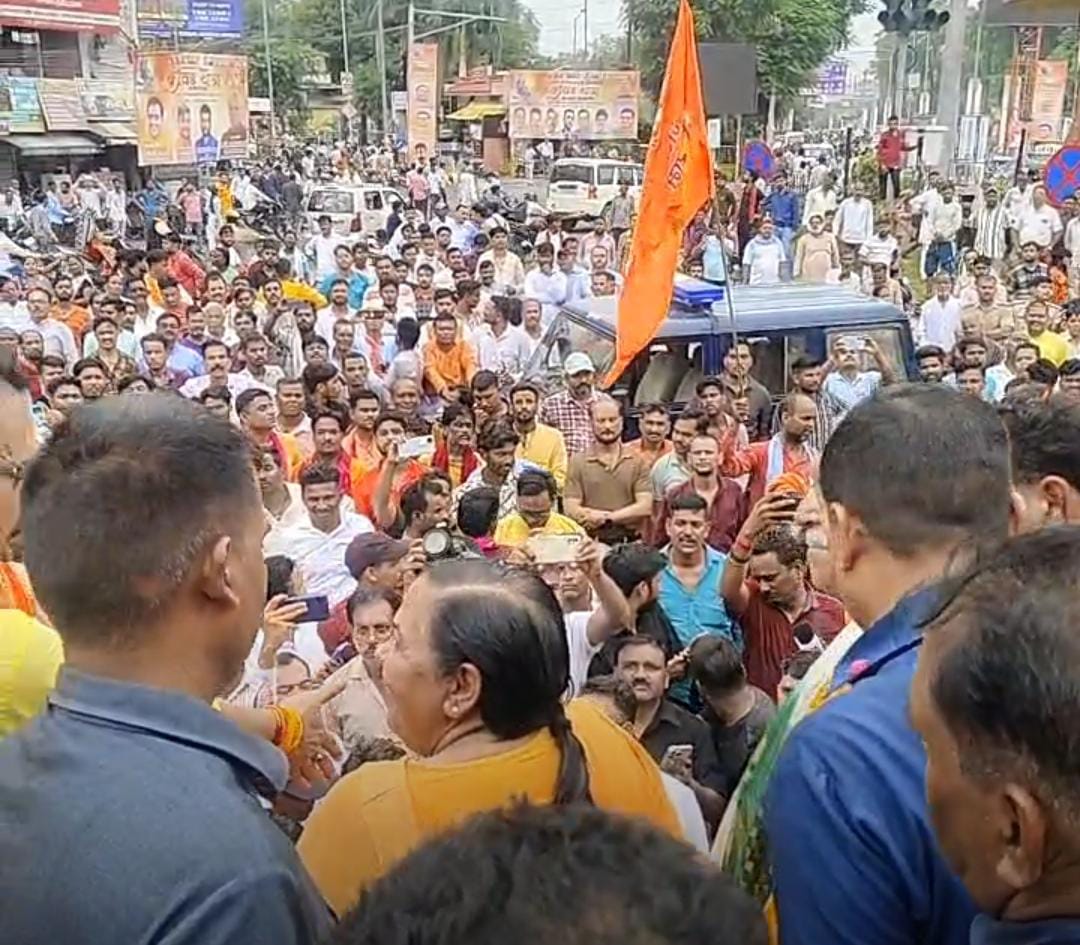 झांसी। तीस किलों मीटर पैदल निकली विशाल कांवड़ यात्रा में हेलीकॉप्टर से हुई पुष्प वर्षा आकर्षण का केंद्र बन गई। वही पैदल आ रहे कांवड़ियों का स्वागत करने के लिए जगह जगह स्टाल लगाए गए। इस स्वागत की कड़ी में जिला प्रशासन ओर पुलिस प्रशासन भी पीछे नहीं रहा। उन्होंने भी कांवड़ियों का स्वागत किया। इस दौरान उमा भारती ने कांवड़ यात्रा में उमड़े जन सैलाब को देख आयोजन ओर बबीना विधायक राजीव सिंह परीक्षा को बधाई दी। वही उन्होंने मोदी ओर योगी के मंत्री विधायकों की सराहना करते हुए कहा कि प्रदेश ओर केंद्र में किसी भी मंत्री, विधायक पर नहीं लगा भ्रष्टाचार का आरोप इसका श्रेय देश के प्रधान मंत्री नरेंद्र मोदी को दिया। प्रतिवर्ष की तरह इस वर्ष भी कांवड़ यात्रा का आयोजन किया गया। जिसके चलते शनिवार को भारी संख्या में श्रद्धालु कांवड़िए राम राजा की नगरी ओरछा नदी से जल लेकर ग्वालियर रोड स्थित सिद्धेश्वर मंदिर तीस किलो मीटर पैदल चलकर आए। इस दौरान सभी कांवड़ियों ओर श्रद्धालुओं का जगह जगह स्वागत किया गया। कांवड़ यात्रा में पचास डीजे और भगवान के स्वरूप रथ पर सवार होकर चल रहे थे। वही पीले वस्त्रों को धारण किए सैंकड़ों महिलाएं कांवड़ यात्रा के आगे आगे डीजे पर भगवान के गीतों पर नाचते झूमते चल रही थी। कांवड़ यात्रा का महानगर के प्रमुख चौराहे पर मध्यप्रदेश की पूर्व मुख्यमंत्री ओर भाजपा की फायर ब्रांड नेता सुश्री उमा भारती ने पुष्प वर्षा कर कांवड़ियों का स्वागत किया। इधर जैसे ही आसमान से हेलीकाप्टर ने कांवड़ियों पर पुष्प वर्षा की तभी तभी कभी श्रद्धालुओं में आस्था का सैलाब उमड़ पड़ा। इस दौरान पूर्व मुख्यमंत्री ने कांवड़ियों का स्वागत करते हुए अभिवादन कर आयोजकों को सफल कांवड़ यात्रा पर बधाई देते हुए बबीना विधायक राजीव सिंह परीक्षा के योगदान की सराहना की। वही पूर्व मुख्यमंत्री ने भ्रष्टाचार पर कुठाराघात करते हुए कहा कि देश के प्रधान मंत्री ने अपने सांसद, मंत्री ओर प्रदेश के विधायक मंत्रियों को राजनीति की अच्छी शिक्षा दी जिसके चलते एक भी विधायक, सांसद मंत्री पर भ्रष्टाचार का आरोप नहीं लगा। वही उन्होंने कहा कि प्रशासन पर भ्रष्टाचार का अंकुश जमीन ने नीचे से ऊपर उठ कर लगाया जाएगा। कांवड़ यात्रा में सुरक्षा व्यवस्था की दृष्टि से भारी पुलिस बल तैनात रहा।वही हेलीकॉप्टर से जिलाधिकारी ओर एसएसपी ने हेलीकॉप्टर के माध्यम से कांवड़ियों ओर श्रद्धालुओं पर पुष्प वर्षा की।