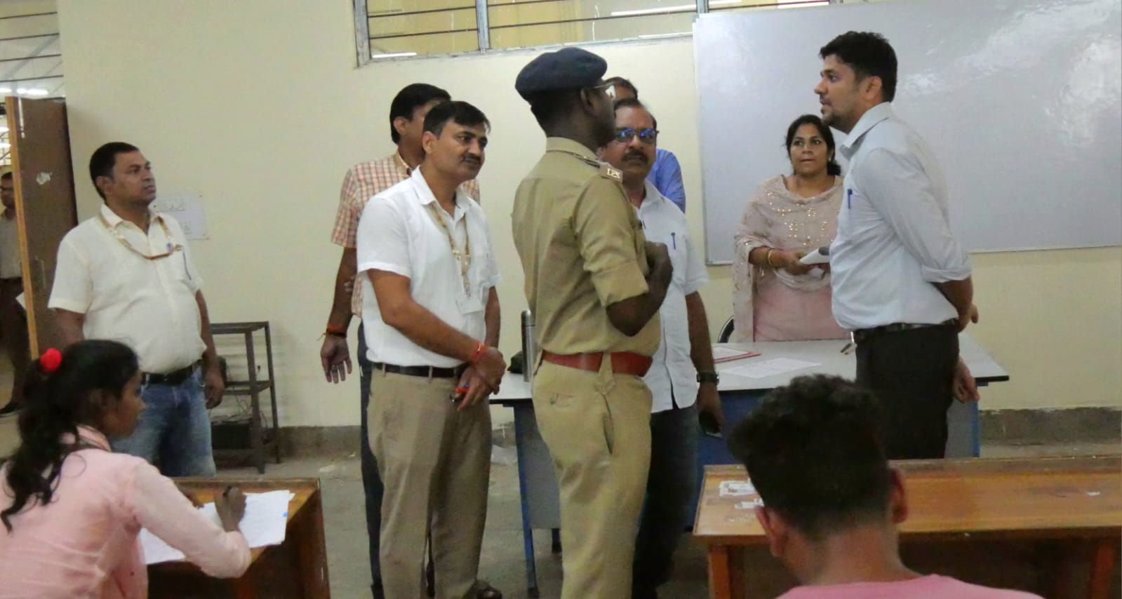 उन्होंने परीक्षार्थियों की जांच के दौरान ही अलग कक्ष में जमा कराने की व्यवस्था को भी देखा। उन्होंने कहा कि नकल विहीन और स्वच्छता पूर्ण परीक्षा आयोजित कराने के संबंध में परीक्षार्थियों की तलाशी सावधानीपूर्वक ली जाए, विशेष रूप से महिला परीक्षार्थियों की तलाशी महिला शिक्षिका द्वारा ही लिए जाने के निर्देश दिए। परीक्षा केंद्रों पर पर्याप्त पुलिस बल की उपलब्धता, इसके अतिरिक्त सभी परीक्षा केंद्रों पर पुलिस के उच्च अधिकारियों द्वारा लगातार भ्रमण किए ज़ाने के निर्देश दिए।