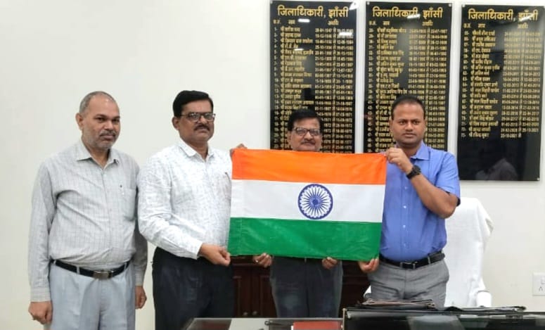 झांसी। आज कलेक्ट्रेट में जनता दर्शन के दौरान जिलाधिकारी रविंद्र कुमार ने जनपद वासियों से अपील करते हुए कहा कि अमृत महोत्सव के अंतर्गत विगत वर्ष की भांति इस वर्ष भी हर घर तिरंगा अभियान चलाया जा रहा है, दिनांक 13 अगस्त से 15 अगस्त तक अधिक से अधिक नागरिक अपने घरों में तिरंगा फहराया जाना सुनिश्चित करें। जिलाधिकारी श्री रविंद्र कुमार ने कहा कि जनपद में लगभग 03 लाख से अधिक राष्ट्रीय ध्वज को फहराए जाने का लक्ष्य निर्धारित किया गया है। अतः समस्त विभागीय अधिकारी अपने लक्ष्य के अनुसार डाकघरों से राष्ट्रीय ध्वज निर्धारित धनराशि में क्रय करना सुनिश्चित करें।उन्होंने यह भी निर्देश दिए कि अधिक झंडों की आपूर्ति के लिए डाकघर को पूर्व में सूचित कर दें ताकि समय से राष्ट्रीय ध्वज की उपलब्धता सुनिश्चित हो सके। जनता दर्शन के दौरान श्री बी0 के0पांडेय प्रवर अधीक्षक डाकघर झांसी मंडल झांसी ने जिलाधिकारी को अवगत कराया कि डाक विभाग आजादी का अमृत महोत्सव के अन्तर्गत विगत वर्ष की भाँति इस वर्ष भी हर घर तिरंगा अभियान को आगे बढ़ाते हुए राष्ट्रीय ध्वज उपलब्ध करा रहा है, साटन / पॉलिएस्टर से निर्मित 30इच 20 इंच आकार वाले राष्ट्रीय ध्वज विक्रय हेतु डाकघरों में उपलब्ध हैं, जिनका मूल्य रूपए 25/- निर्धारित किया गया है। बी0के0 पांडेय प्रवर अधीक्षक डाकघर ने बताया कि उत्तर प्रदेश शासन के विभिन्न विभागों को हर घर तिरंगा अभियान 2.0 के लिए झंडों की आवश्यकता है। इस सम्बन्ध में आपको अवगत कराना है कि डाक विभाग द्वारा वांछित संख्या में झंडों की आपूर्ति मंडल के समस्त 612 डाकघरों द्वारा चिन्हित स्थानों पर करायी जा सकती है। इस सम्बन्ध में किसी भी जानकारी अथवा सहायता हेतु ए0के0 त्रिपाठी, सीनियर पोस्टमास्टर प्रधान डाकघर झांसी (मोबाइल नं0 9452808518) की सहर्ष उपलब्धता रहेगी। इसके अतिरिक्त उक्त कार्य के लिए झांसी डाक मण्डल के नोडल ऑफिसर देश दीपक शुक्ला (मोबाइल नं० 9453020563) भी किसी भी समस्या के समाधान के लिये सदैव उपलब्ध रहेंगे। इस अवसर पर बी0के0 पांडेय अवर अधीक्षक डाकघर, झांसी मंडल झांसी, ए0के0 त्रिपाठी सीनियर पोस्ट मास्टर प्रधान डाकघर झांसी, नोडल ऑफिसर देश दीपक शुक्ला झांसी डाक मंडल उपस्थित रहे।
