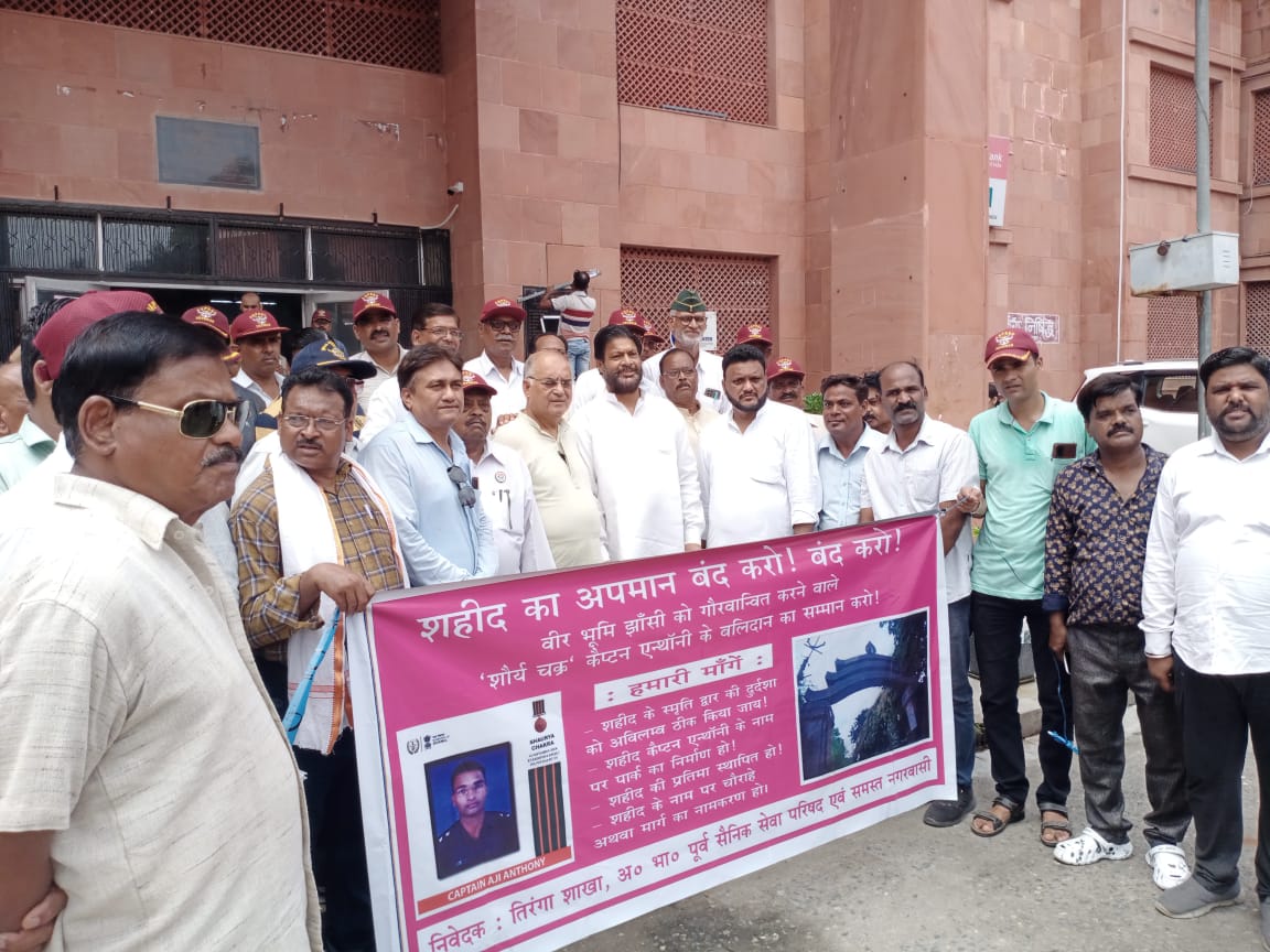 झांसी। स्मार्ट सिटी योजना के तहत करोड़ों रूपयो से जनपद में विकास कार्य किया जा रहा लेकिन अमर शहीद वीरों के लिए स्मार्ट सिटी में एक फूटी कोड़ी भी नही दी गई। यह आरोप लगाते हुए पूर्व केंद्रीय मंत्री ने नगर निगम पहुंच कर चेतावनी देते हुए कहा कि अमर शहीदों का अपमान बर्दास्त नही किया जायेगा। जरूरत पड़ने पर सड़को पर आंदोलन किया जाएगा। सोमवार को पूर्व केंद्रीय मंत्री प्रदीप जैन आदित्य ने पूर्व सैनिकों के साथ मिलकर तिरंगा शाखा के नेतृव में नगर निगम पहुंच कर एक ज्ञापन सौंपा। जिसमे मांग करते हुए बताया कि खाती बाबा निवासी कैप्टन अजी एंथोनी आतंकियों से मुठभेड़ में शहीद हो गए थे। उनके नाम का स्मृति द्वार ईसाई टोला में बनाया गया था। साथ ही शौर्य चक्र से नवाजा गया था। उन्होंने मांग करते हुए कहा कि जिस स्मृति द्वार बना था तभी जनता की मांग पर अजी एंथोनी के नाम का पार्क एवम मार्ग बनाने का नगर निगम ने आश्वाशन दिया था।