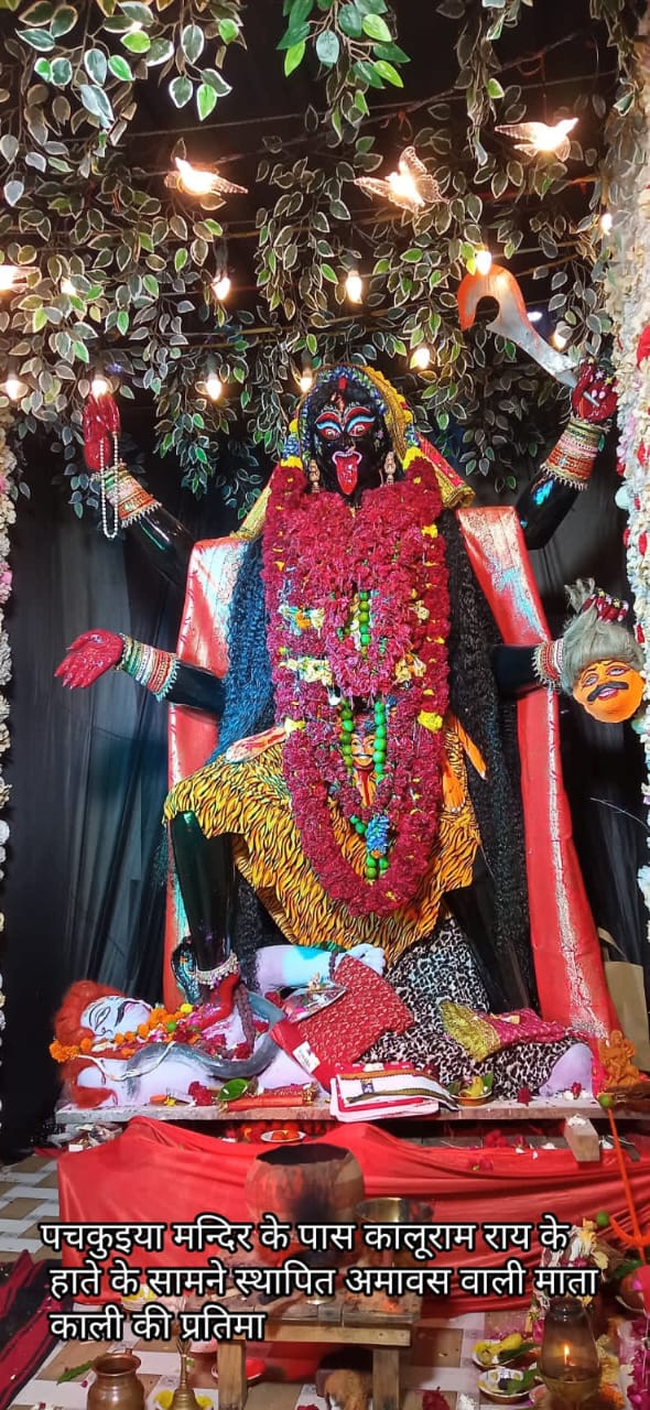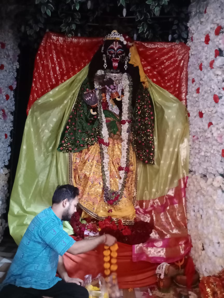 झांसी। हर वर्ष की तरह इस वर्ष भी 17 वी साल अमावस्या की भद्रकाली मां की प्रतिमा की स्थापना बड़े ही धूमधाम से की गई। दिवाली की रात मां भद्रकाली की विशेष पूजा अर्चना कर अगले दिन विसर्जित की जाएंगी।शहर कोतवाली क्षेत्र के पंचकुइया मंदिर के पास निवासी अजय कश्यप उर्फ अज्जू पिछले 17 वर्षो से अपने घर पर ही मां की काली की प्रतिमा बनाकर उनकी स्थापना करते है और दिवाली के दिन विशेष पूजा अर्चना कर दिवाली के अगले दिन उनका विसर्जन किया जाता है।अजय ने बताया कि जब वह आठ वर्ष थे तब से उन्होंने दिवाली पर मां काली की पूजा अर्चना के लिए हर वर्ष दिवाली के त्योहार के नौ दिन पूर्व प्रतिमा बनाते है, इस वर्ष भी उन्होंने प्रतिमा बनाकर 23 अक्टूबर को स्थापित की थी। उन्होंने बताया कि पूरे नौ दिन लगातार मां की आराधना होती है और दिवाली की रात विशेष पूजा के बाद अगले दिन विसर्जन किया जाता है। उन्होंने कहा सप्तमी के दिन रविवार की रात मां के दरबार में जगराता हुआ था। इसके बाद भंडारा प्रसाद वितरण किया गया। उन्होंने कहा कि दिवाली की रात अमावस्या पर पूजा अर्चना कर एक नंबर को मां की प्रतिमा को विसर्जन किया जाएगा। यह मां की प्रतिमा स्थापित करने का 17 वा साल है।
