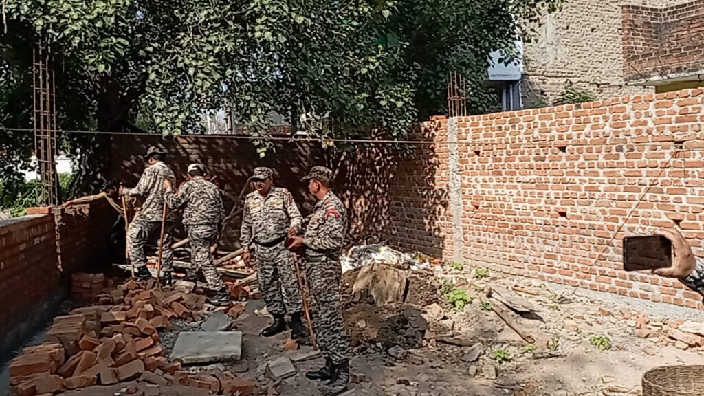 झांसी। सरकारी जमीन पर हो रहे अवैध कब्जे की शिकायत पर पहुंची नगर निगम और जेडीए की टीम ने बुलडोजर चलाकर लाखो कीमत की जमीन मुक्त करा ली।शुक्रवार को जिला प्रशासन को सूचना मिली थी की प्रेमनगर थाना क्षेत्र के राजीव नगर नगरा में सरस्वती ज्ञान मंदिर स्कूल के पास पड़ी सरकारी जमीन पर कुछ दबंग लोग अवैध रूप से कब्जा कर निर्माण कार्य कर रहे है। इस सूचना पर पहुंची नगर निगम और जेडीए की टीम बुलडोजर लेकर मौके पर पहुंची ओर अवैध कब्जे को ध्वस्त कर जमीन को मुक्त करा लिया।