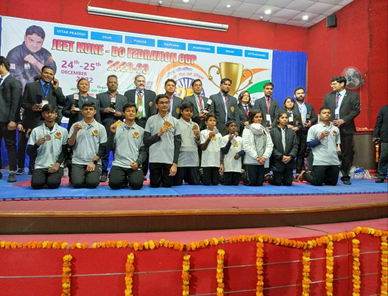 झांसी। गाजियाबाद में जीत कुनेडो मार्शल आर्ट नेशनल चैंपियनशिप की फाइट में झांसी के विद्यार्थियों ने 4 स्वर्ण पदक व 11 रजत पदक प्राप्त किये। वही कानपुर में ताइक्वांडो नेशनल चैंपियनशिप में झांसी ब्लैक ड्रैगन मार्शल आर्ट खिलाड़ियों ने 7 स्वर्ण पदक 6 रजत पदक हासिल करके फिर से एक बार झांसी का नाम रोशन किया। गाजियाबाद में दीपक कुमार वर्मा को रैफरी में गोल्ड मेडल मिला। नेशनल चेम्पियन खिलाडियों में इशांक शर्मा , धैर्य मिश्रा, अथर्व वाजपेई, सूर्यांश सोलंकी, आशी त्रिपाठी, हिमांशी आनंद, ,दिव्या पुरंदरे, प्रियांशी सोलंकी, यश कुमार, रोहित प्रजापति, भरत सूर्यवंशी, पी.केविन ,प्रतीक श्रीवास्तव, विजेता रहे। (वही कानपुर में ताइक्वांडो चेम्पियन) , अंशिका यादव,आशी त्रिपाठी,प्रियांशी सोलंकी, हिमांशी आनंद, साक्षी, वानी भगत,साक्षी रायकवार, कशिश वर्मा काव्या, सूर्यांश सोलंकी , इशांक शर्मा, प्रवीन खैर, अचल कुमार, नैतिक गौतम ने पदक हासिल किये । महिला कोच वन्दना शर्मा सीनियर कोच दीपक कुमार वर्मा के नेतृत्व में सभी खिलाड़ियों ने शानदार प्रदर्शन किया।