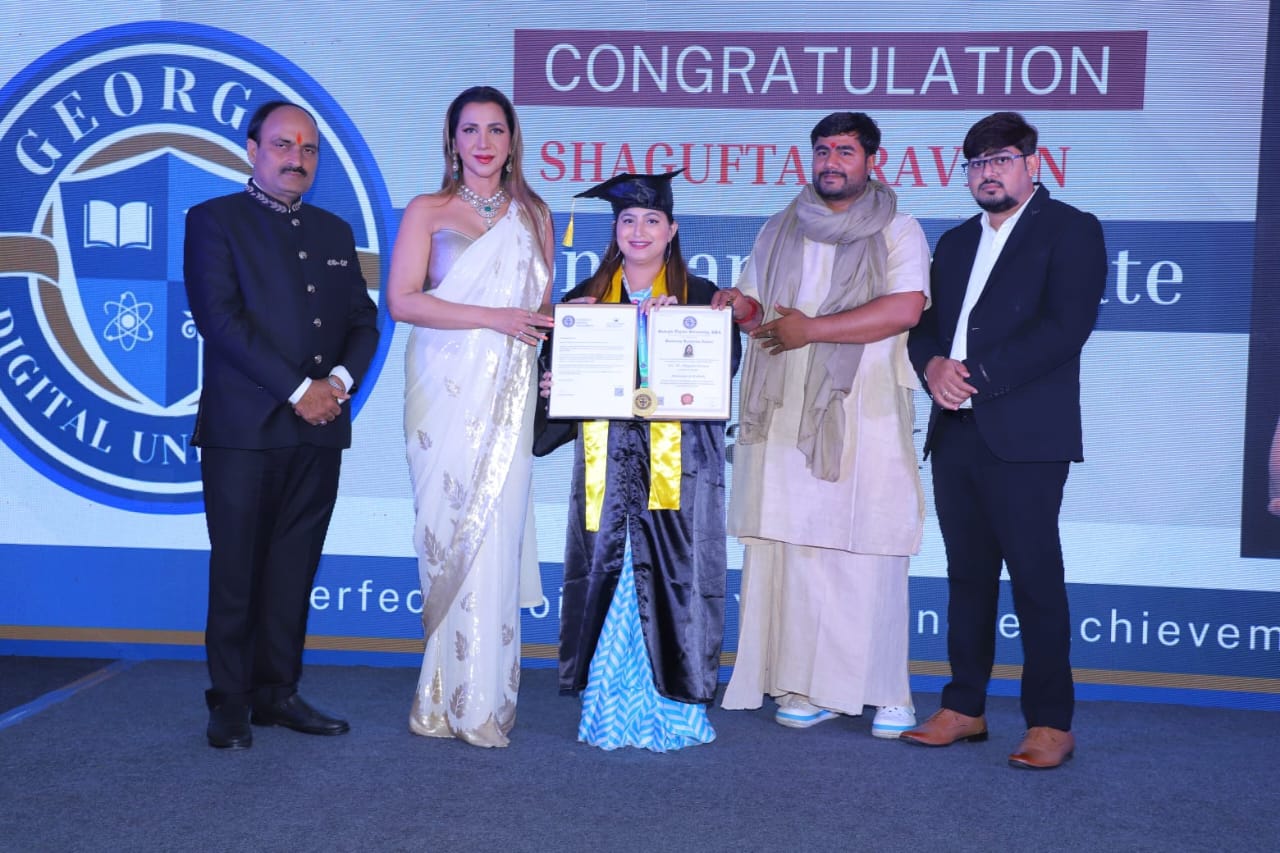 झांसी। झांसी की बेटी शगुफ्ता डांस क्लासेस की डायरेक्टर शगुफ्ता खान को कथक डांस टीचर को डॉक्टरेट मानक उपाधि देकर सम्मानित किया गया है, शगुफ्ता खान को दिल्ली में मुख्य अतिथि बॉलीवुड एक्टर रितु शिवपुरी ने डॉक्टरेट की मानक उपाधि दी है, शगुफ्ता की इस उपलब्धि से उनके परिवार में खुशी की लहर है, वहीं शगुफ्ता की इस उपलब्धि पर शहरवासियों में खुशी की लहर है, उनके घर वापस आने पर झांसीवासियों ने उनका माला पहनाकर जोरदार स्वागत किया, लोगों का कहना था कि शगुफ्ता लगातार एक के बाद एक उपलब्धियां हासिल कर रही हैं और झांसी शहर का नाम रोशन कर रहीं हैं, झांसी वीरभूमि की बिटिया शगुफ्ता खान ने शहर का नाम भारत की राजधानी दिल्ली जैसे शहर में सुनहरे अक्षरों में लिखकर एक अनूठा कार्य किया है, डॉक्टरेट की मानक उपाधिकार्यक्रम में मौजूद मुख्य अतिथि ने कहा कि बुंदेली माटी में जन्मी शगुफ्ता की जितनी प्रशंसा की जाए कम हैं, बता दें कि दिल्ली के एक स्थानीय होटल में सम्मान समारोह कार्यक्रम का आयोजन किया गया, इस दौरान शगुफ्ता खान समेत 50 लोगों को यह सम्मान दिया गया, इस दौरान मुख्य अतिथि बॉलीवुड एक्टर रितु शिवपुरी समेत तमाम मेहमान मौजूद रहे।
