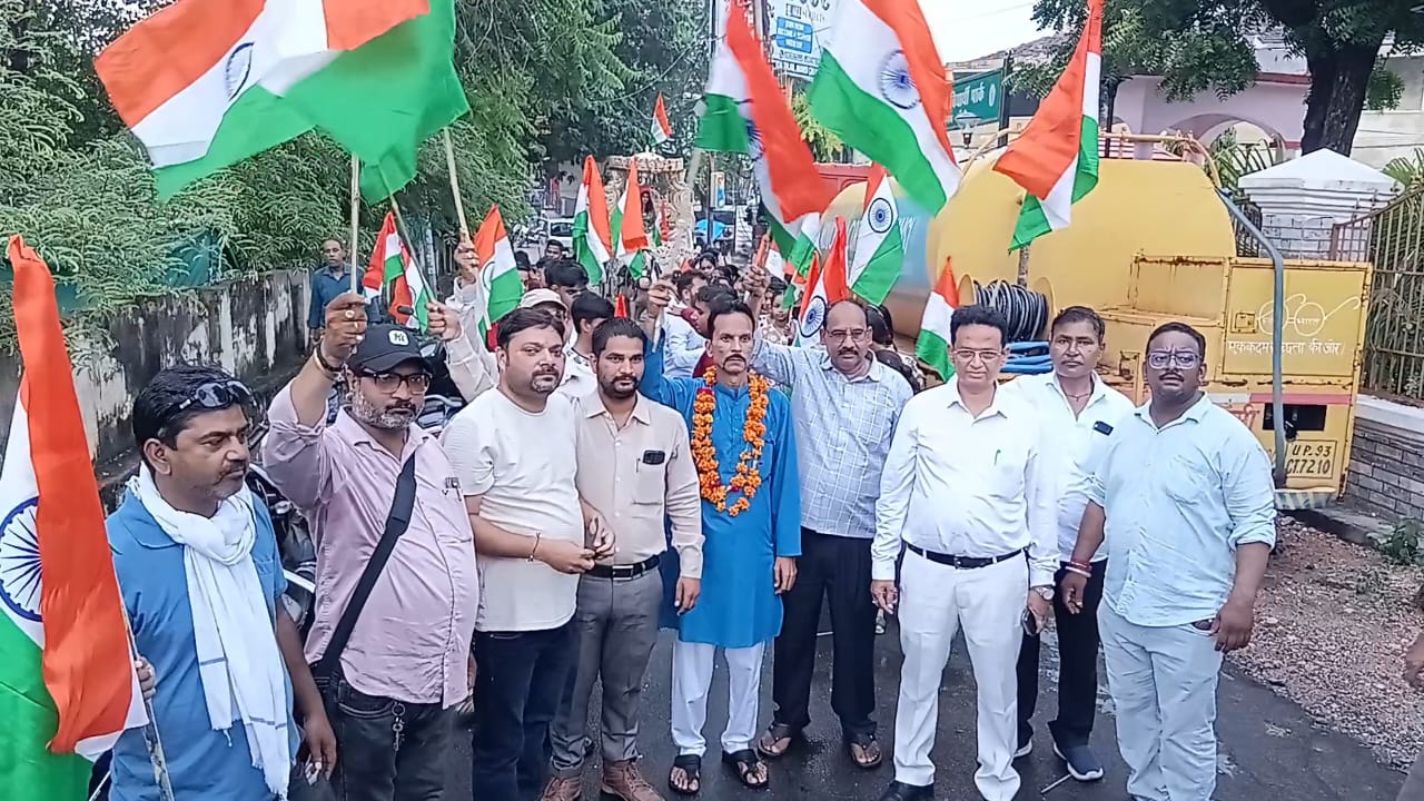 झांसी। हर वर्ष की तरह इस वर्ष भी स्वतंत्रता दिवस की पूर्व संध्या पर झांसी मीडिया क्लब के तत्वावधान में अध्यक्ष मुकेश वर्मा के नेतृत्व में तिरंगा यात्रा निकाली गई। तिरंगा यात्रा का शुभारंभ डीजीसी क्राइम मृदुलकांत श्रीवास्तव ने किया। गुरुवार को इलाईट चौराहा स्थिति अमर शहीद गणेश शंकर विद्यार्थी पार्क से झांसी मीडिया क्लब के तत्वावधान में पत्रकारों ने स्वतंत्रता दिवस की पूर्व संध्या पर तिरंगा यात्रा निकाली। जिसमें मुख्यरूप से डीजीसी क्राइम मृदुल कांत श्रीवास्तव रहे। तिरंगा यात्रा झांसी दुर्ग पर समाप्त हुई। इस दौरान पत्रकार शशांक त्रिपाठी, राजीव सक्सेना, बृजेश साहू, रानू साहू, रवि साहू, नईम खान, अभिनव अग्रवाल उर्फ गोलू, अतुल वर्मा, राकेश शर्मा, विनोद गौतम, अनंजय नेपाली, अरविंद भार्गव, अमित रावत, महेंद्र राज साहू, कर्मचारी नेता अब्दुल रहीश सिद्दकी, पूरन सिंह, राहुल कोस्टा, यश कोस्टा, यश स्टडी सर्किल, संजू गोस्वामी, बृजेश परिहार, दीपक चौहान, रोहित कुमार, दीपक चौहान, सवा खान, सहित कई पत्रकार उपस्थित रहे।