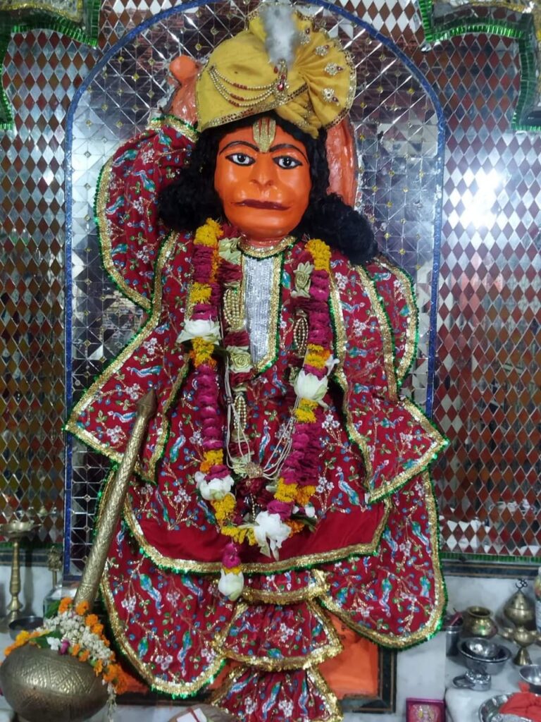 यहा हनुमान जी को सिर्फ लंगोट ही नहीं पहनाई जाती पूरे वस्त्र पहनाए जाते हैं, साथ ही मंदिर में दो दरबान भी बिठाए जाते हैं, और माना गया हैं कि यह मंदिर सैकड़ो साल पुराना हैं, कहा जाता हैं कि मुस्कुराते हुए हनुमान जी के दर्शन करने से हर संकट दूर हो जाते हैं, यहां मंदिर में आए भक्तो का कहना हैं कि बहुत साल पहले बहुत ही छोटा सा मंदिर था हनुमान जी का लोगों कि इतनी मनोकामनायें पूरी हुई आज सभी देवी देवताओं कि मूर्ति स्थापित हो गई हैं यही कारण हैं कि यहां भक्तों कि भीड़ रहती हैं इस मंदिर में पान और मेवे का प्रसाद चढ़ाया जाता हैं