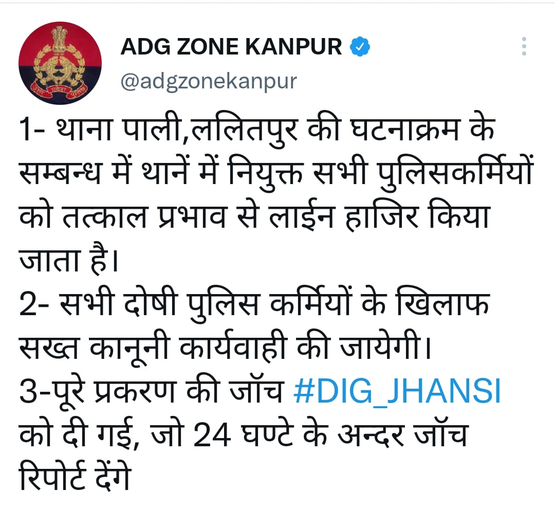 झांसी। मंडल के जिला ललितपुर के थाना पाली में हुए गैंगरेप की घटना के प्रकरण को गंभीरता से लेकर एडीजी कानपुर ने बड़ी कार्यवाही की है। एडीजी कानपुर ने पूरे थाना को लापरवाही बरतने दोषी पाए जाने पर निलंबित कर दिया है। साथ ही एक कमेटी गठित कर जांच के आदेश दिए गए है। वही उन्होंने पूरे प्रकरण की जांच डीआईजी झांसी को दी है 24 घंटे में जांच रिपोर्ट देंगे डीआईजी।