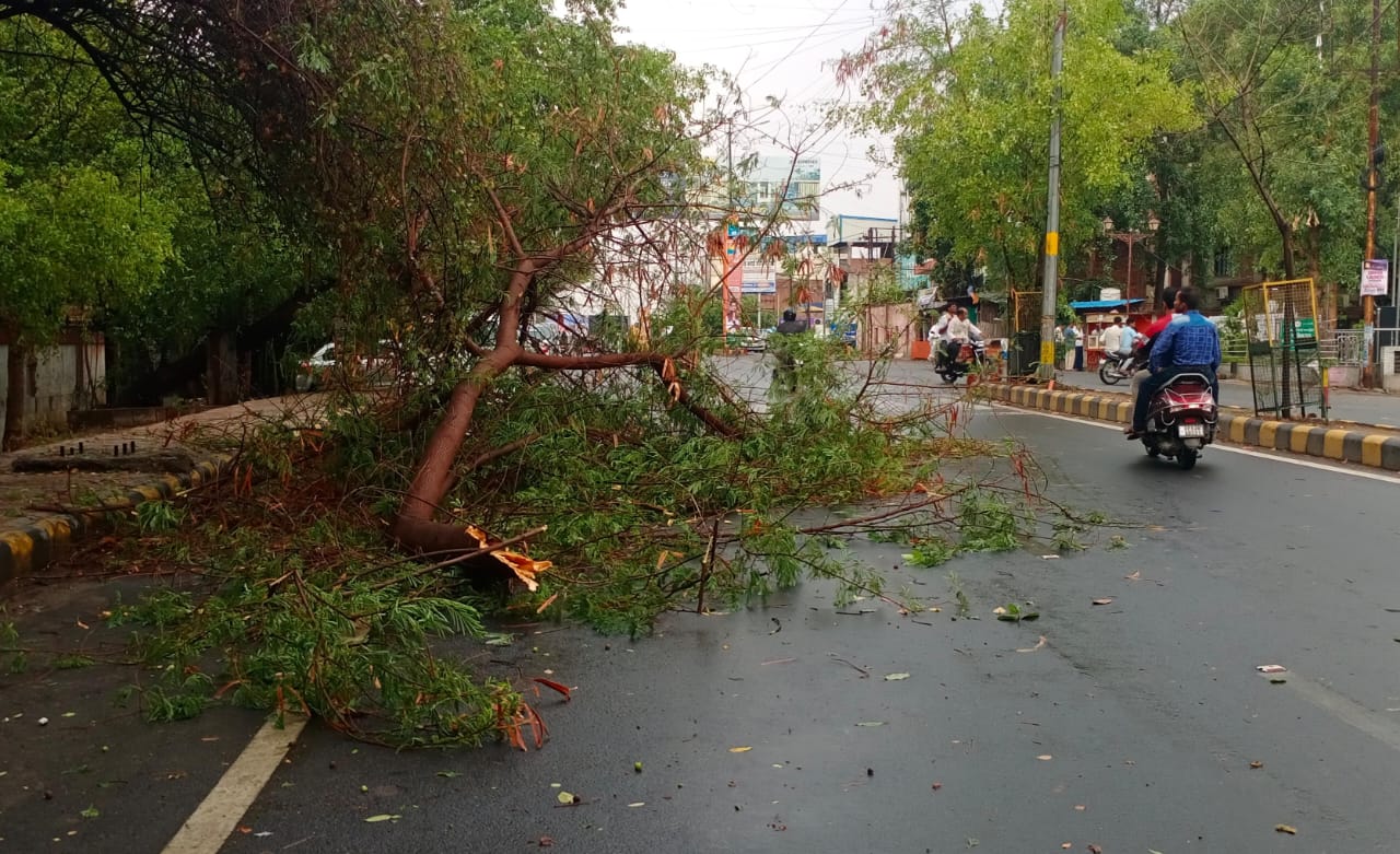 तेज आंधी से कई पेड़ और होर्डिंग गिरी, हल्की बारिश से बढ़ी उमस ने किया बेहाल