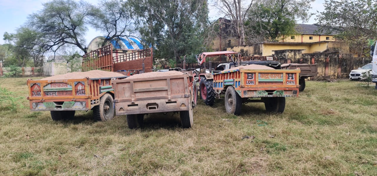 खनिज और पुलिस विभाग ने संयुक्त रूप से चलाया अभियान, अवैध वालू से भरे पांच वाहन जब्त