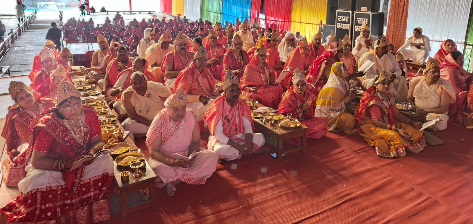 झांसी। महानगर के बड़ागांव गेट बाहर सूंजे खां खिड़की मार्ग स्थित चावला कॉलोनी के पास बनी अयोध्या नगरी में चल रहे श्री मज्जिनेन्द्र जिनबिम्ब पंचकल्याणक प्रतिष्ठा महोत्सव में मुनिश्री विलोकसागर जी महाराज एवं मुनिश्री विबोधसागर जी महाराज के सानिध्य एवं प्रतिष्ठाचार्य बाल ब्रह्मचारी संजय भैया जी मुरैना एवं बाल ब्रह्मचारी नवीन भैया जी जबलपुर के निर्देशन में गर्भकल्याणक की मांगलिक क्रियाएं एवं पूजन सम्पन्न हुई। प्रातः श्रीजी के मस्तक पर शांतिधारा करने का सौभाग्य मुकेश नायक चिरगांव, राकेश सिंघई को प्राप्त हुआ। तीर्थंकर के माता पिता श्रीमति सुलेखा – मनोज नायक, सौधर्म इंद्र श्रीमति उषा – रविन्द्र सिंघई, कुबेर इंद्र श्रीमति श्वेता – नितिन जैन, भरत चक्रवर्ती श्रीमति पूनम – संजीव जैन मिनी चिरगांव, महायज्ञनायक श्रीमति कल्पना – अरविन्द जैन कामरेड, बाहुबली श्रीमति कनिका – शशांक जैन, यज्ञनायक श्रीमति प्रिया – प्रतीक जैन, ईशान इन्द्र श्रीमति ममता – जितेन्द्र चौधरी, सानतकुमार इन्द्र श्रीमति रश्मि – गौतम जैन (सुपाड़ी), माहेन्द्र इन्द्र श्रीमति मेघा,- प्रदीप जैन महरौनी, राजा श्रेयांस श्रीमति सुलोचना – सनत नायक, राजा सोम श्रीमति प्रियंका – अमरेन्द्र ड्योढिया, महामंडलेश्वर श्रीमति अनीता – इंजी.अनिल जैन, श्रीमति नेहा – अलंकार जैन, श्रीमति अंजू – रवींद्र जैन रेल्वे, श्रीमति प्रभा – दिनेश जैन दीनू, विशेष इंद्र श्रीमति सविता – विनोद जैन ठेकेदार, श्रीमति मनीषा – मनोज सिंघई, श्रीमति निकिता – सजल जैन चैनू, जिनेन्द्र जैन शामयाना, लहर जैन, वीरेन्द्र चौधरी, रमेश चंद्र जैन बिजली, दिव्यांश जैन, भगवानदास जैन, पवन जैन सतभैया, जितिन जैन अछरौनी, यश सिंघई, मंडलेश्वर राजा मुकेश जैन वीडियो , दीपक जैन, पदम चंद जैन रानीपुर, प्रिंस जैन, जिनेन्द्र जैन बंगलाघाट, सौरभ जैन महरौनी, सीए रूपाली जैन, आरती जैन, मेघा जैन सहित अनेकों इन्द्र इंद्राणियों ने गर्भ कल्याणक की मांगलिक क्रियाएं करते हुए पूजन सम्पन्न की। इस अवसर पर वहीं सांयकाल सांस्कृतिक कार्यक्रमों में सौधर्म इंद्र का दरबार एवं माता मरुदेवी के सोलह स्वप्नों को दिखाया गया। जिसका फलादेश महाराजा नाभिराय ने बताया। मंगलाचरण श्रीमति ऐना जैन एवं आकृति जैन ने प्रस्तुत किया। सायंकालीन महाआरती का सौभाग्य सुधीर जैन, रविन्द्र जैन, संजय जैन, राजीव जैन (चिरगांव परिवार) को प्राप्त हुआ।  पंचकल्याणक प्रतिष्ठा महोत्सव समिति के मुख्य मार्गदर्शक अजित जैन, अध्यक्ष संजय सिंघई, कार्याध्यक्ष खुशाल जैन, मुख्य संयोजक दिनेश जैन डीके, कार्यक्रम संयोजक विनोद जैन ठेकेदार, परम संरक्षक हुकुमचंद जैन, मुख्य सलाहकार रमेश चंद्र जैन अछरौनी, जिनेन्द्र सर्राफ, प्रदीप जैन चैन
