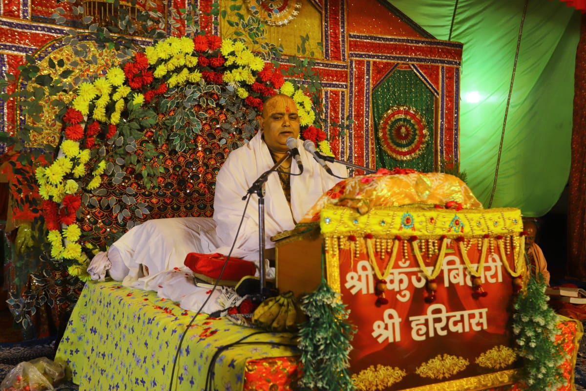 झांसी।नोटक्षीर बनगुवां बरूआसागर स्थित गिरवरधारी जू महाराज के 25 वें पावन प्राकट्य महा महोत्सव एवं श्री हनुमंत महायज्ञ के उपलक्ष्य में आयोजित श्रीमद भागवत कथा के चतुर्थ दिवस पर गिरवरधारी जू का मंदिर प्रांगण साक्षात गोकुलधाम बन गया,जहां कथा व्यास बुंदेलखण्ड धर्माचार्य राधामोहन दास महाराज ने भगवान श्रीकृष्ण के जन्मोत्सव का पावन प्रसंग सुनाया। भगवान के जन्म की कथा का प्रसंग सुन श्रोता जमकर झूमे जिससे पूरा वातावरण धर्ममय हो गया। नौनिहालों को टाफियां, बिस्कुट एवं खिलौने तो महाराज ने मेवा, मिष्ठान्न एवं लड्डू के रुप में बधाईयां बांटकर श्रद्धालुओं की झोलियां भर दी। कथा व्यास ने ‘नंद घर आनंद भयौ जै कन्हैया लाल की। हाथी दीन्हें, घोडा दीन्हें और दीन्हीं पालकी।’मधुर भजन गाये जिनकी धुनें सुन श्रोता भक्ति रह में सराबोर हो गये।इससे पूर्व क्षत्रिय वंश में जन्मे प्रभु राम के अवतार एवं वामन भगवान के अवतार का मार्मिक वर्णन करते हुए महंत ने कहा कि जन्म तो इंसान का होता है,परमात्मा का नहीं। परमात्मा तो अजन्मा है, वह तो कण कण में बसा है तथा समय आने पर स्वत:ही प्राकट्य हो जाता है। उन्होंने कहा कि जब जब धर्म की हानि होती हैं, पृथ्वी पर अधर्म बढता है तो संतों की रक्षा एवं दुष्टों का संहार करने तथा भक्तों को अपनी लीला का रसपान कराने के लिए प्रभु का प्राकट्य होता है। प्रात:कालीन बेला में यज्ञाचार्य रामलखन उपाध्याय एवं पं.अनिल तिवारी ने विधि विधान से वेदिका पूजन कराया तदुपरांत यजमानों ने यज्ञ में आहुतियां दी। प्रारंभ में पारीछित श्रीमती विभा मृदुल तिवारी,ममता अजय अग्रवाल, दीर्घा विजय चौधरी,गीता राजेंद्र अग्रवाल, मुस्कान धीरज कुशवाहा, रमा आशाराम कुशवाहा, राजेश्वरी कोमल सिंह सिजरिया, जयकुंवर लालाराम कुशवाहा, सुनीता रामसिंह, फूलवती बृजमोहन साहू,रज़नी मारुति दीक्षित एवं गिरवरधारी जू मंदिर के पुजारी मदनमोहन दास एवं राधाबल्लभ महाराज श्रीधाम वृंदावन ने महाराजश्री का माल्यार्पण कर श्रीमद भागवत पुराण की आरती उतारी।अंत में व्यवस्थापक परमानंद दास ने सभी का आभार व्यक्त किया।रात्रि में श्रीधाम वृंदावन धाम से पधारे श्रीहितआदर्श कृष्णकला भक्तमाल भक्तमाल चरित्र रामलीला मंडल के कलाकारों ने स्वामी देवेंद्र वशिष्ठ के निर्देशन में दशरथ मरण एवं बरती मिलाप की लीला का मनमोहक मंचन किया।*संतों को भंडारा करा दी विदाई*ग्वालियर रोड स्थित कुंजबिहारी मंदिर में बृजमंडल एवं नेमिषारण्य से सैकडों संत पधारे।यह सभी संत किष्किंधा पर्वत जा रहे हैं जिन्होंने एक दिवस झांसी के कुंजबिहारी मंदिर में विश्राम कर भण्डारा चखा। मंदिर में अचानक पधारे सैकडों संतों की सूचना पाकर नोटक्षीर मंदिर में विराजमान महंत 