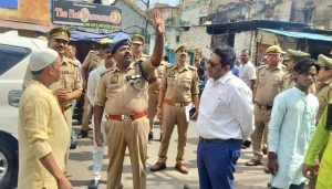 झांसी। जिलाधिकारी मृदुल चौधरी और वरिष्ठ पुलिस अधीक्षक बी0 बी0 जी0 टी0 एस0 मूर्ति ने पुलिस बल के साथ शहर के शहर के प्रमुख मस्जिद मार्गों परकिया पैदल भ्रमण एवं अन्य संवेदनशील इलाकों का दौरा किया।
