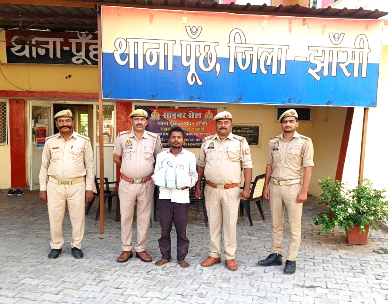 झांसी। एसएसपी के निर्देशन में जनपद झांसी मादक पदार्थ के खिलाफ चलाए जा रहे अभियान के तहत पूछ थाना पुलिस ने एक को अवैध रूप से गांजा की तस्करी कर ले जाते हुए गिरफ्तार कर लिया है। जानकारी मुताबिक पूछ थाना पुलिस ने स्टेशन रोड के पास बंद पड़ी बिल्डिंग के पास से एक युवक कनकन उर्फ टुंडे निवासी अमरोक को एक थैला में एक किलो डेढ़ सौ ग्राम अवैध गांजा सहित गिरफ्तार कर लिया। पुलिस ने आरोपी के खिलाफ मामला दर्ज कर उसे जेल भेज दिया है।