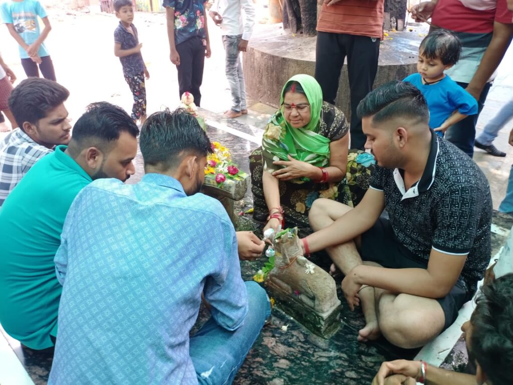 झांसी। बैसे तो ईश्वर के चमत्कारों को लेकर कई किस्से सामने आते है। इसी कड़ी में रविवार को शहर क्षेत्र के चर्चित शंकर सिंह की बगिया में ऐसा एक चमत्कार देखने को मिला। यहां भक्तो ने दावा किया की मंदिर में शिवलिंग के समक्ष बैठे नंदी बाबा जल पी रहे है। इसके बाद जैसे ही यह बात शोशल मीडिया पर फैली मंदिर में भक्तों का तांता लग गया। मंदिर में भक्तों की भीड़ लग गई। सभी लोग नंदी को जल पिलाने को आतुर दिखाई दिए। जानकारी के मुताबिक शहर कोतवाली क्षेत्र स्थित शंकर सिंह का बगीचा में स्थित भगवान शंकर की प्रतिमा के सामने स्थापित नंदी महाराज पर प्रतिदिन की तरह क्षेत्रवासी जल अर्पित कर रहे थे। तभी क्षेत्रीय पार्षद भी पूजा करने पहुंचे जहां उन्होंने देखा नंदी महाराज जल पी रहे है। इसके बाद उन्होंने उसकी वीडियो बनाई और सोशल मीडिया पर वायरल कर दी। वीडियो वायरल होते ही मंदिर परिसर में लोगों का हुजूम लग गया और सभी लोग पुरुष महिलाए और बच्चे नंदी महाराज को जल ग्रहण करते देख एक झलक पाने को बड़े आतुर दिखे। यह अविस्वनीय चमत्कार करीब चार घंटे चलता रहा है।