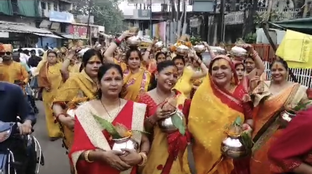शिव पुराण के प्रथम दिवस पर कलश यात्रा का आयोजन किया