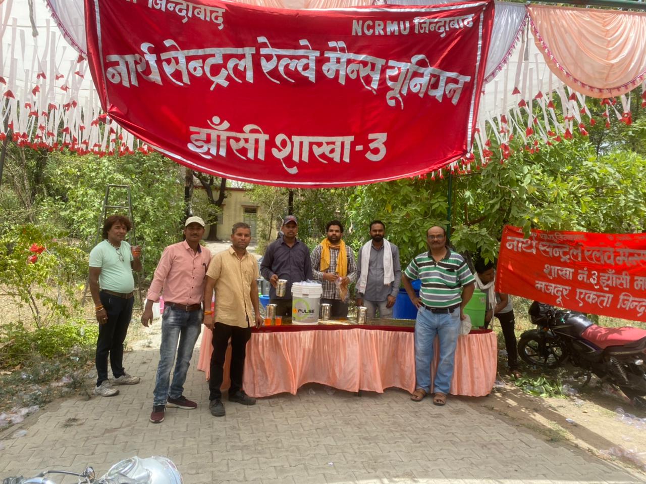 झाँसी। आज दिनांक 10/6/22 नार्थ सेंट्रल रेलवे मेंस यूनियन झांसी शाखा 3 के प्रांगण के बाहर शाखा के पदाधिकारियों तथा सक्रिय सदस्यों ने रेल संस्थान इंस्टिट्यूट के चुनाव मैं विजय की खुशी में शरबत तथा ठंडा जल का वितरण का आयोजन किया इस अवसर पर रास्ते से गुजरने वाले राहगीरों को शरबत तथा ठंडा जल वितरित किया इस मौके पर झांसी मंडल के मंडल अध्यक्ष कामरेड एच एस चौहान, मंडल मंत्री कामरेड बीएस कंसाना, मंडल कार्यकारी अध्यक्ष कामरेड मनोज जाट, मंडल संयुक्त मंत्री कामरेड मोहम्मद शकील, तथा शाखा 2 की शाखा सचिव कामरेड सुनील पाल, शाखा 4 के शाखा सचिव कामरेड आनंद प्रजापति कार्यक्रम में सम्मिलित हुए तथा Ncrmu jhs 3 की शाखा सचिव कामरेड एसके द्विवेदी, शाखा उपाध्यक्ष कामरेड मोहम्मद जकरिया, कामरेड जीतेंद्र चक्रवर्ती, कॉमरेड अकील अहमद, शाखा सहायक सचिव एसके श्रीवास्तव, कामरेड नरेंद्र शाक्य यूथ सचिव कामरेड गगन यादव, यूथ अध्यक्ष कामरेड विनोद कुमार ईसीसी सोसाइटी के डायरेक्टर कामरेड ए एस चौहान ईसीसी सोसाइटी डेलिगेट कामरेड प्रवेश सिंह, कामरेड रामू यादव खेल संस्थान इंस्टिट्यूट के उपाध्यक्ष कामरेड मोहम्मद शहीद इंस्टिट्यूट डेलिगेट कॉमरेड मोहम्मद शरीफ ,कॉमरेड एजाज रहमान, कॉमरेड विकास सक्सेना, कामरेड तेज सिंह मीणा तथा सक्रिय सदस्य कॉमरेड नीरज कुमार ,बीके पांडे, पंकज पांडे ,दया शंकर पांडे, अजय कुमार थापा, विनोद यादव ,वीरेंद्र ,रविंद्र देशराज ,मनीष, तेजू, बृजलाल ,गरीबदास, महिंद्र आनंद, सतीश मिश्रा ,धर्मेंद्र श्रीवास्तव ,रवि यादव जितेंद्र दुबे, धर्मेंद्र यादव, रवि श्रीवास सुनील पुरोहित यूथ सचिव आदि सक्रिय सदस्य उपस्थित रहे अंत में शाखा सचिव झांसी 3 एसके द्विवेदी ने आभार व्यक्त किया।