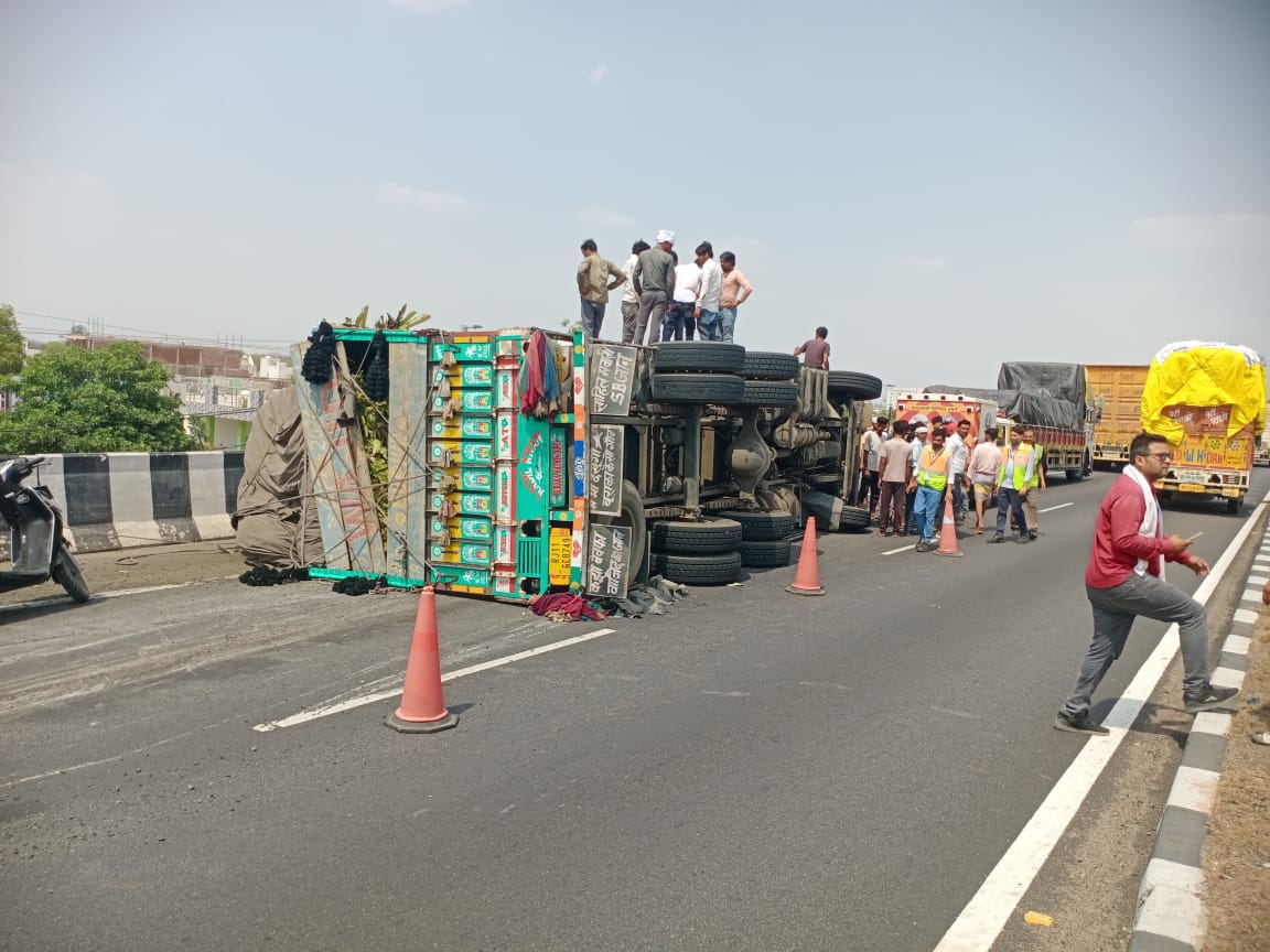 Home उत्तर प्रदेश रक्सा शिवपुरी हाइवे पर ट्रक पलटा, बाल बाल बचे लोग