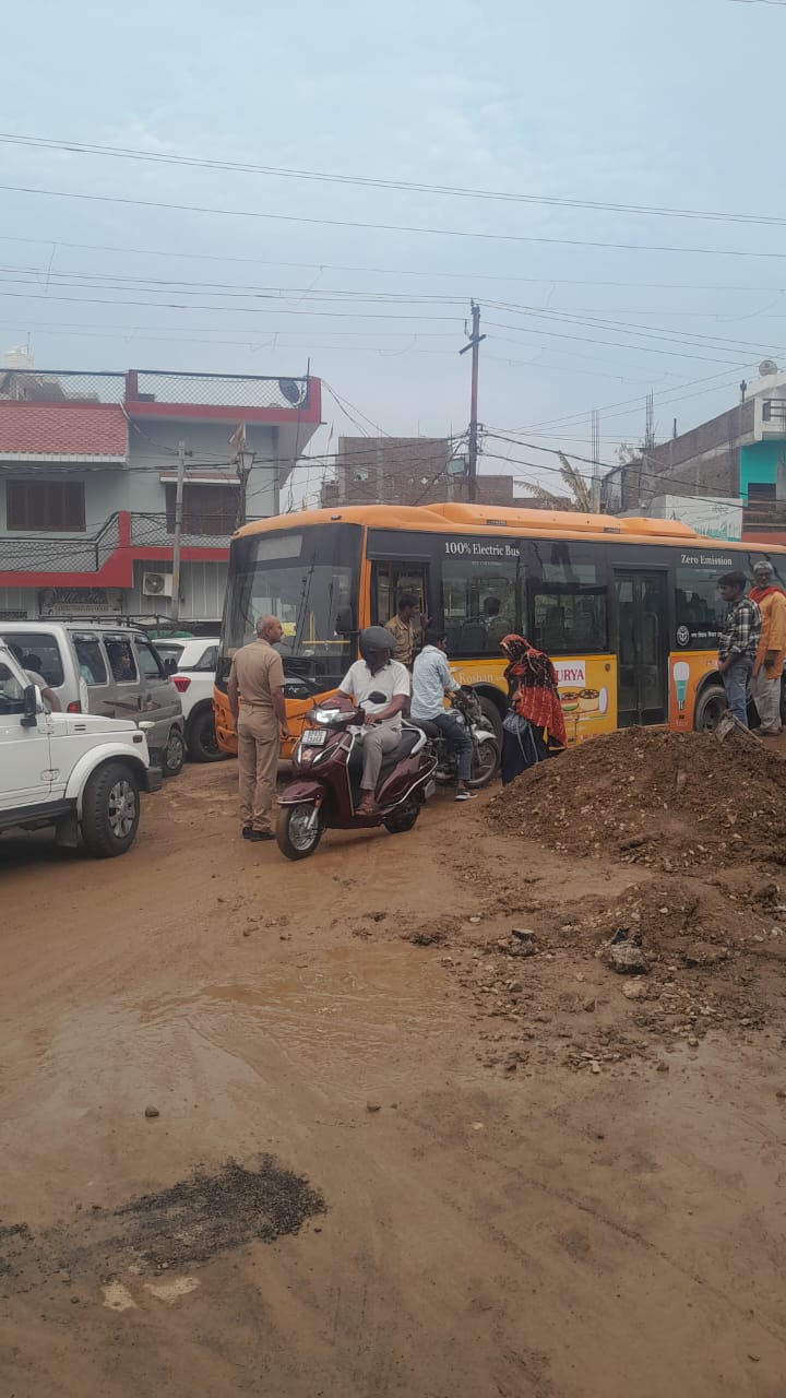 झांसी। झांसी बबीना रोड पर इलेक्ट्रिक बस और दूसरी तरफ जल निगम की टूटी पाइप लाइन डलने के कारण दोनो तरफ से लंबा जाम लग गया है। शहर में पानी की समस्या को दूर करने के लिए जल निगम द्वारा टूटी हुई पाइप लाइन को हटाकर नई बिछाई जा रही है। यह पाइप लाइन सड़क किनारे खुदाई करके डाली जा रही है। हंसारी में अभी इसका कार्य चल रहा है। जिसके चलते वनवे हो गया। दूसरी ओर से वाहनों का आवागमन हो रहा है। जिससे आज एक इलेक्ट्रिक बस फस गई। इलेक्ट्रिक बस के फसने से दोनो लंबा जाम लग गया है। सूचना पर पहुंची पुलिस जाम खिलवाने का प्रयास कर रही है। लेकिन यहां बस डिपो होने से प्रतिदिन इस जाम की समस्या से लोगों को जूझना पड़ रहा है।