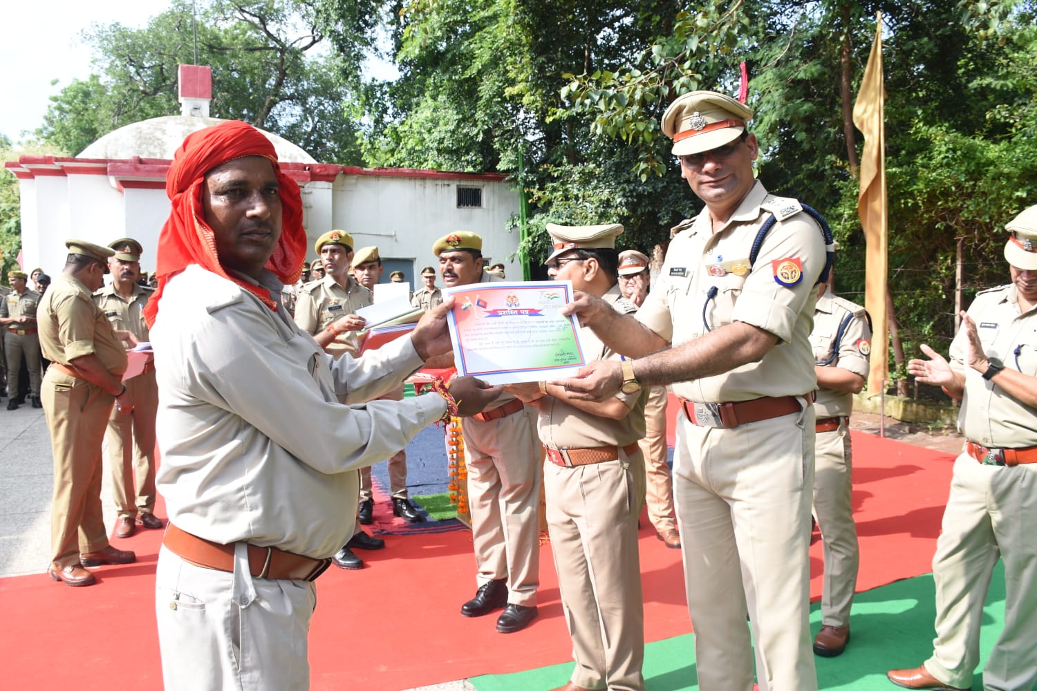 झांसी। पंद्रह अगस्त के उपलक्ष्य में आयोजित किए गए ध्वजा रोहन कार्यक्रम के दौरान डीआईजी और एसएसपी ने जनपद के सराहनीय कार्य करने वाले पुलिस कर्मियों को सम्मानित करते हुए उनके कार्यों की प्रशंसा की। साथ ही एसएसपी शिवहरि मीना ने बिकरू कांड में शहीद हुए सिपाही सुलतान के परिजनों से मुलाकात करते हुए उनके साथ भोजन कर उन्हे बताया की भले ही आज सुलतान हम लोगों के बीच नही है। लेकिन उत्तर प्रदेश पुलिस विभाग हमेशा शहीद सुलतान के परिजनों के साथ रहेगा। आज 76वें स्वतन्त्रता दिवस के शुभ अवसर पर पुलिस उपमहानिरीक्षक झांसी परिक्षेत्र झांसी जोगेन्द्र कुमार एवं वरिष्ठ पुलिस अधीक्षक झांसी शिवहरी मीना द्वारा रिजर्व पुलिस लाईन झांसी में ध्वजारोहण कर राष्ट्रीय तिरंगे को सलामी दी। ध्वजारोहण के उपरान्त सभी अधिकारी/कर्मचारीगण को सत्यनिष्ठा पूर्वक अपने दायित्वों व कर्तव्यों के निर्वहन हेतु प्रेरित किया। राष्ट्र के नाम अपने उद्बोधन में वरिष्ठ पुलिस अधीक्षक द्वारा स्वतंत्रता प्राप्ति में अहम भूमिका निभाने वाले स्वतंत्रता सेनानियों एवं देश के लिये अपना सर्वस्व न्यौछावर करने वाले वीर क्रांतिकारी जवानों की गौरव गाथा के बारे में बताया गया। उन्होंने अपने वक्तव्य में कहा कि पुलिस बल एक अनुशासित बल है जिसके कन्धों पर अत्याधिक जिम्मेदारियां होती हैं। हम सबको चुनौतीपूर्ण दायित्वों को पूर्ण जिम्मेदारी के साथ निभाना होता है। वर्तमान समय कानून व्यवस्था को बनाए रखने सहित अन्य चुनौतियों का सामना जिस तन्मयता व निष्ठा से आप सबने मिलकर किया और कर रहे हैं, उसकी प्रंशसा हर तरफ हो रही है। हमें अपने आपको हमेशा ऊर्जावान रखते हुए सकारात्मक सोच के साथ आगे बढ़ते रहना है। कल और आज कुछ पुलिस अधिकारियों एवं कर्मचारियों को प्रशस्ति-पत्र सहित विभिन्न पुरस्कारों से पुरस्कृत किया गया उन सभी को बधाई परन्तु ऐसा नहीं है कि जो पुरस्कृत नहीं किये जा सके वो अच्छा काम नहीं कर रहे हैं, हम सब मिलकर एक टीम भावना से कार्य कर रहे हैं और उसका परिणाम भी सबके सामने स्पष्ट रूप से दिख रहा है। उन्होंने कहां कि हम सब सौभाग्यशाली हैं कि उस जगह हमें सेवा करनें का दायित्व मिला है जो धरती वीर शहीद जवानों की गाथाओं से भरी पड़ी है। आज सभी शपथ लें कि अपने दायित्वों व कर्तव्यों का निर्वहन पूर्ण निष्ठापूर्वक एवं ईमानदारी से करेंगे। अपने सेवा के दौरान उत्कृष्ठ कार्य करने वाले पुलिस अधि0 एवं कर्म0 गण को पुलिस महानिदेशक उ0प्र0 द्वारा दिये गये सेवा चिन्हों को प्रदान किया गया। इसके अतिरिक्त जनपदीय पुलिस द्वारा विभिन्न क्षेत्रों में अत्यन्त कर्मठता से अपने शासकीय दायित्वों का निर्वहन करने वाले पुलिस अधि0/कर्म0 गण को उनके परिश्रम, लगन एवं निष