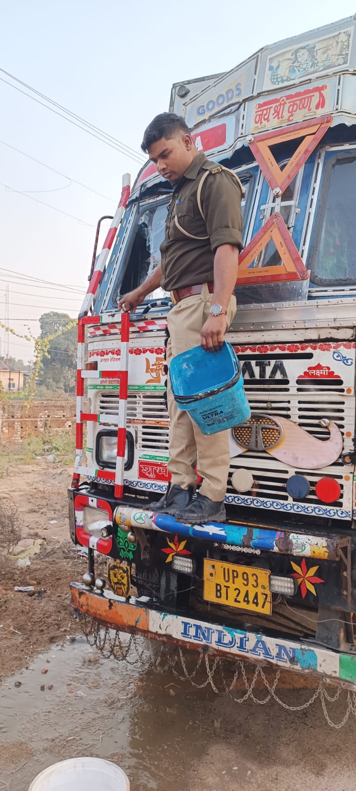 झांसी। झांसी ललितपुर राजमार्ग पर बिजौली में बंटी ढाबा के सामने खड़े ट्रक में धुआं निकलता देख लोगों में हड़कंप मच गया ट्रक के अंदर आग लगने की सूचना मिलते ही बिजौली पुलिस तत्काल मौके पर पहुंची और आगे का शीशा तोड़कर पानी डालकर आग बुझाने की कोशिश की कुछ ही मिनट बाद आग पर काबू पा लिया गया वरना बड़ा हादसा हो सकता था।थाना प्रेम नगर क्षेत्र अन्तर्गत बिजौली में बंटी ढाबा के सामने ट्रक ने.यूपी 93वी की 2447 खड़ा हुआ था कि शाम लगभग 4 बजे ट्रक के अंदर से राहगीरों ने धुआं निकलता देखा तो हड़कंप मच गया इसी बीच किसी ने आग लगने की सूचना बिजौली पुलिस को दी तो बिजौली चौकी प्रभारी पूनम वर्मा सब इंस्पेक्टर वीरेंद्र सिंह सिपाही सद्दाम ख़ान के साथ मौके पर पहुंचे और तत्काल आग पर काबू पाने के लिए पानी फेंकना शुरू जिससे आग भड़कने से पहले ही बुझा ली गई चौकी प्रभारी पूनम वर्मा ने बताया कि ललितपुर राजमार्ग पर खड़े ट्रक से धुआं निकलने की खबर मिली थी आग विकराल रूप धारण करती इससे पहले ही काबू पा लिया गया है ट्रक के गेट खोलने के बाद पता चला कि स्टेरिंग के पास निकले वायरों में स्पार्किंग से आग लगी थी।