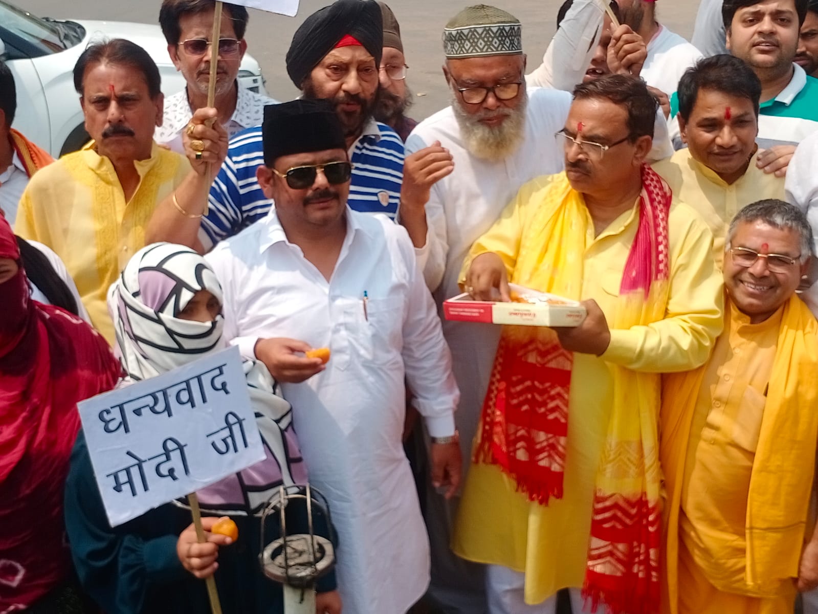 झांसी। वक्फ विधेयक संशोधन बिल लोक सभा में पास होने पर आज भाजपाइयों के साथ मुस्लिम समुदाय ओर मुस्लिम समुदाय की महिलाओं ने हर्ष व्यक्त करते हुए देश के प्रधान मंत्री ओर केंद्र सरकार को धन्यवाद देते हुए खुशी जाहिर की ओर मिठाई वितरित कर एक दूसरे का मुंह मीठा कराया। गुरुवार को भारतीय जनता पार्टी के कानपुर बुंदेलखंड क्षेत्र के क्षेत्रीय अध्यक्ष प्रकाश पाल के नेतृत्व में दर्जनों भाजपाइयों ओर मुस्लिम समुदाय, पुरुष ओर महिलाओं ने जमकर हर्ष व्यक्त करते हुए केंद्र सरकार ओर प्रधान मंत्री नरेंद्र मोदी का धन्यवाद ज्ञापित करते हुए मिठाइयां बांटी। इस दौरान क्षेत्रीय अध्यक्ष ने कहा कि वक्फ संशोधन बिल पास होने से जो आर्थिक संकट से जूझ रहे तथा हर मुस्लिमों को लाभ मिलेगा। उन्हें सम्मान मिलेगा। इस बिल के पास होने से जो अपराधिक मानसिक प्रवृति के लोग है, सिर्फ उन्हीं को बुरा लग रहा है। वक्फ विधेयक पास होने से मुस्लिम समुदाय के हित में कार्य होगा उनका विकास होगा। इस दौरान भाजपा के पूर्व महानगर अध्यक्ष मुकेश मिश्रा, गौ सेवा आयोग के अध्यक्ष श्याम बिहारी गुप्ता, व्यापारी नेता मन मोहन गैंडा, पुनीत अग्रवाल सहित दर्जनों भाजपाई ओर मुस्लिम समुदाय के लोग उपस्थित रहे।