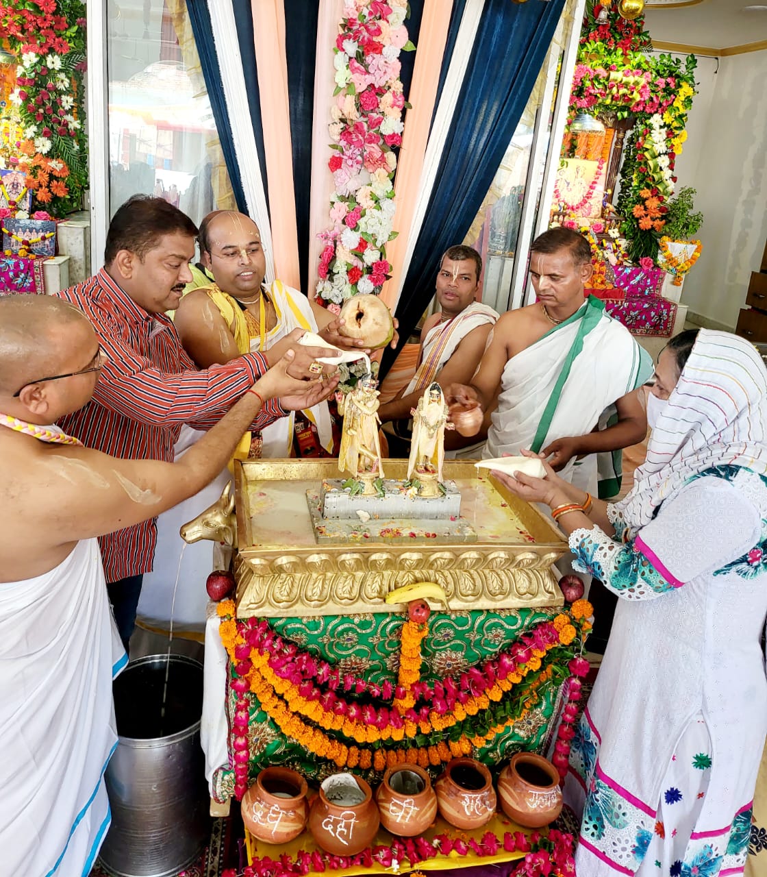 झांसी। इस्कान मंदिर में राधाष्टमी महोत्सव भव्यता से आयोजित हुआ। वेद मंत्रों के साथ श्री कृष्ण व राधा जी का अभिषेक, श्रृंगार कर महाभिषेक किया गया। संकीर्तन उपरांत विशाल भंडारा हुआ।श्री राधा जी के प्राकटय दिवस पर सुबह मंगला आरती हुई। अभिषेक व श्रृंगार किया गया। मंदिर अध्यक्ष ब्रजभूमि दास प्रभु ने राधा जी के प्राकटय की कथा सुनाई। छप्पन भोग पश्चात जन्मोत्सव की भव्य महाआरती की गयी। श्रद्धालुओं ने हरिनाम संकीर्तन किया बधाई गीत गाए। इसके पश्चात विशाल भंडारा हुआ। मंदिर में देर रात तक श्रद्धालुओं का ताता लगा रहा। इस अवसर पर मंदिर के प्रमुख सहयोगी सुरेंद्र राय, महेश सराफ, राजीव अग्रवाल,अशोक सेठ, मनीष नीखरा, रमेश राय , अशोक गुप्ता, अजय अग्रवाल, महामुनि दास,प्रिय गोविन्द दास , दिलीप साहू सुन्दर मोहन दास आदि उपस्थित रहे। संयोजक पीयूष रावत ने सभी आभार व्यक्त किया।