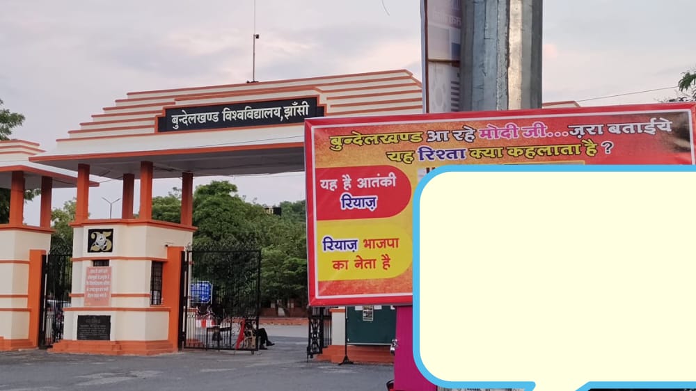 झांसी। देश के प्रधान मंत्री बुंदेलखंड आ रहे इसके एक दिन पूर्व आतंकी रियाज और भाजपा का क्या संबंध है, इस स्लोगन को लिखकर एक आपत्ति जनक पोस्टर विश्विद्यालय पर लगाने वाला छात्र को देर रात पुलिस ने गिरफ्तार कर जेल भेज दिया साथ ही पुलिस ने पोस्टर बैनर हटा दिए है।जानकारी के मुताबिक बुंदेलखंड एक्सप्रेस वे का शुभारंभ करने बुंदेलखंड के जिला जालौन आ रहे प्रधानमंत्री के आगमन के एक दिन पूर्व विश्विद्यालय के छात्र अभिषेक प्रताप सिंह पुत्र अरुण कुमार निवासी मवैया नैनी प्रयागराज ने विश्विद्यालय के गेट पर बैनर पोस्टर लगाकर सवाल किया की आतंकी रियाज का भाजपा से क्या ताल्लुकात है। यह आपत्ति जनक पोस्टर लगाने की सूचना मिलते ही पुलिस महकमे में हड़कंप मच गया। आनन फानन में मौके पर देर शाम पहुंची पुलिस ने पोस्ट बैनर कब्जे में लेकर आरोपी छात्र के खिलाफ मुकदमा दर्ज कर उसे गिरफ्तार कर लिया है।