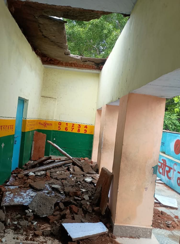 प्राथमिक कंपोजिट विद्यालय : एक साल पहले हुआ जीर्णोद्वार, बरसात से गिरी छत, खुली भ्रष्टाचार की पोल