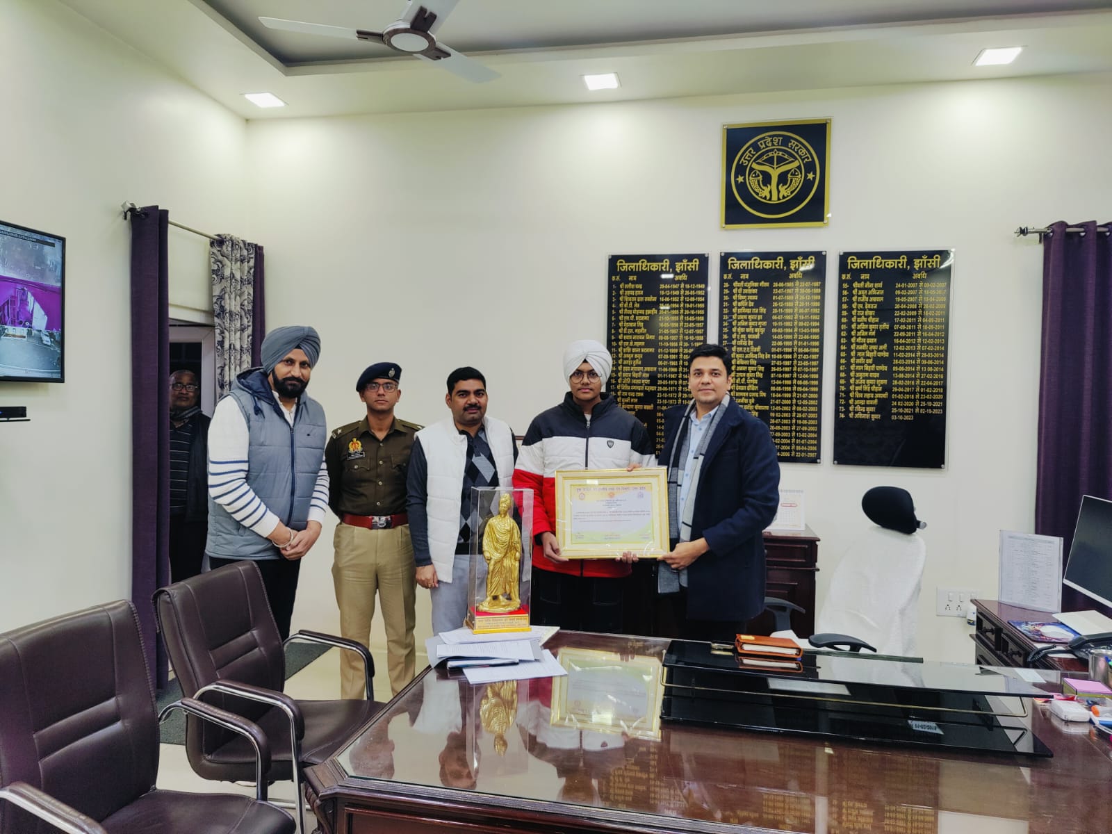 झांसी। मुख्यमंत्री द्वारा झांसी के युवा चित्रकार अर्शप्रीत सिंह को युवा कल्याण महानदेशालये के सबसे बड़े पुरस्कार “विवेकानन्द यूथ अवाॅर्ड” से सम्मानित किया गया है। यह पुरस्कार प्रदेश के 10 ऐसे युवाओं को दिया जाता है, जो क्षेत्र में विशेष में उत्कृष्ट कार्य करते है। अर्शप्रीत सिंह ने अपने हाथ से कई हस्तियों चित्र बनायें है, यह सम्मान पाने वाले वह झांसी के इकलौते युवा चित्रकार है। स्वामी विवेकानंद जयंती के पावन अवसर पर आयोजित राज्य स्तरीय समारोह लखनऊ में “विवेकानंद यूथ अवार्ड” में प्रथम स्थान प्राप्त करने पर आज कलेक्ट्रेट में जिला अधिकारी से भेंट करने पहुंचे अर्शप्रीत सिंह को बधाई देते हुये जिलाधिकारी अविनाश कुमार ने कहा कि होनहार युवा चित्रकार अर्शप्रीत सिंह ने झांसी का मान बढ़ाया है और उनकी इस उपलब्धि ने झांसी सहित पूरे प्रदेश को गौरवान्वित किया है। झांसी की धरती ने हमेशा गौरवशाली इतिहास रचा है, और आज एक बार फिर हमारे युवा चित्रकार अर्शप्रीत सिंह ने इस परंपरा को आगे बढ़ाते हुए झांसी का नाम रोशन किया है। अर्शप्रीत सिंह का यह सम्मान युवाओं के लिए प्रेरणा स्रोत है और हमें यकीन है कि उनका समर्पण और मेहनत आने वाले समय में और भी ऊंचाइयों पर पहुंचे। युवा चित्रकार अर्शप्रीत सिंह ने बताया कि “भारत के प्रधानमन्त्री नरेन्द्र मोदी से मुलाकात और उन्हें अपने हाथों से बनाए गए स्कैच को भेंट के दौरान करने का यह सु-अवसर वाकई बहुत रोमांचक व गौरवान्वित करने वाला था। 20 जुलाई 2022 बुधवार के पूर्वाह्न 11.25 का वह अविस्मरणीय पल मैं हमेशा अपने जेहन में रखना चाहूँगा।” इसी प्रकार मुख्यमंत्री योगी आदित्यनाथ द्वारा प्राप्त प्रदान किये गये पुरस्कार से बहुत उत्साहित हूं। जिलाधिकारी से भेंट के दौरान कलेक्ट्रेट झांसी में अपर जिलाधिकारी प्रशासन अरुण कुमार सिंह, अपर पुलिस अधीक्षक शिवम आशुतोष, अर्शप्रीत सिंह के पिता अमरप्रीत सिंह भी उपस्थित रहे।