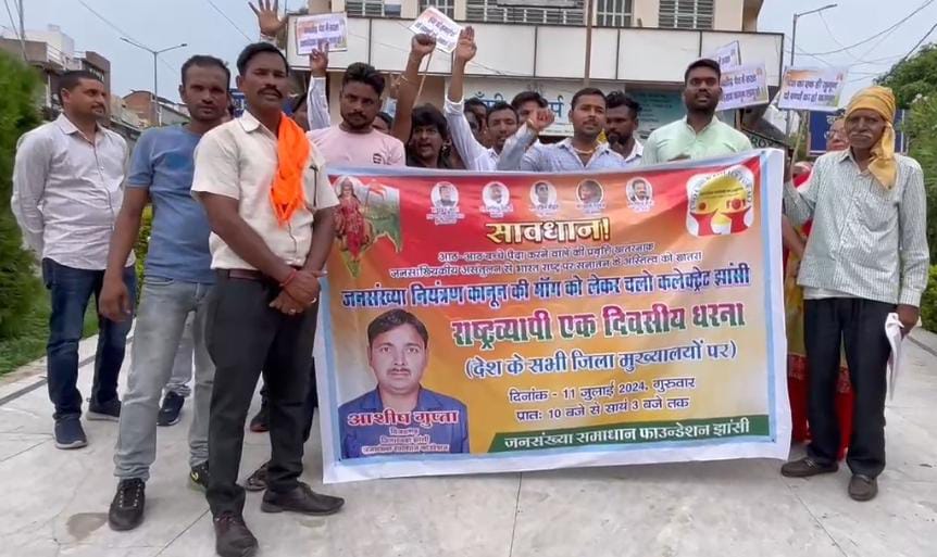 झांसी। ब्रहस्पतिवार, 11 जुलाई 2024 को जनसंख्या समाधान फाउन्डेशन के कार्यकर्ताओं ने JSF जिलाध्या के नेतृत्व में जिला मुख्यालय पर धरना दिया तथा जनसंख्या विस्फोट एवंजनसांडियकीय असंतुलन जैसी भीषण समस्या से उत्पन्न हो रहे संभावित गृहयुद्ध के खतरे को रोकने के लिए जिलाधिकारी के माध्यम से प्रधानमंत्री, भारत सरकार के नाम ज्ञापन सौंपा।धरने में उपस्थित कार्यकर्ताओं ने बताया कि अंधाधुंध संतानोत्पत्ति करने की प्रवृत्ति पर ‘जनसंख्या नियंत्रण कानून” बनाकर अंकुश लगाने में एक-एक पल की देरी भारत और भारतीय संस्कृति के लिए पूर्व की भांति ही विघटनकारी साबित हो सकती है। एक वर्ग विशेष द्वारा रणनीति के तहत जानबूझकर बढ़ाई जा रही जनसंख्या और सनातन समाज की युवा पीढी में एक बच्चे तक सीमित रहने की बढ़ती प्रवृत्ति के कारण देश के अनेक भागों में 6 वर्ष से कम आयु वर्ग के बच्चों में जनसंख्या का संतुलन उस वर्ग विशेष के पक्ष में झुकता दिखने लगा है। भारत जनसंख्या में धार्मिक असंतुलन के कारण हुए विघटन के दश का प्रत्यक्ष मुक्तभोगी है, परन्तु पूर्व की सरकारों की विभाजन के तुरन्त बाद से जारी तुष्टिकरण की नीति के चलते अब फिर से वैसी ही परिस्थितियां निर्मित होती दिखाई दे रही हैं।कार्यकर्ताओं ने आगे बताया कि विभिन्न सामाजिक वर्गों के बीच जनसंख्या का अनुपात वर्तमान अनुपात के अनुसार बनाए रखने के उद्देश्य से ‘जनसंख्या नियंत्रण कानून बनाने की मांग को लेकर ‘जनसंख्या समाधान फाउन्डेशन द्वारा विगत लगभग 11 वर्षों से हजारों छोटी बड़ी सभाएं, धरना-प्रदर्शन, सांसद-संवाद कार्यक्रम, राष्ट्रपति सहित महत्त्वपूर्ण लोगों से भेंट आदि के रूप में राष्ट्रव्यापी अभियान चलाया जा रहा है। संगठन के जिलाध्यक्ष ने बताया कि “जनसंख्या नियंत्रण कानून बनाने हेतु समय रहते आवश्यक कदन ना उठाए जाने की स्थिति में निकट भविष्य में विधायक एवं सांसदों सहित महत्वपूर्ण जनप्रतिनिधियों के घेराव की योजना पर भी संगठन में विचार चल रहा है। जिला गुख्यालय पर आयोजित कार्यक्रम में गाँधी उधान में धरना दिया जिसमें अंकित गुप्ता ,कटेश पार्षद, जावाज भाई सचिंद्र गुप्ता , राहुल धानुक आसम चौदारी, . अजय वरार सीवी सिंह नीरज ओरछ, यश विश्नोई, आदि सहित बड़ी संख्या में धानुक, अजय तरार सो कार्यकर्ता उपस्थित रहे।