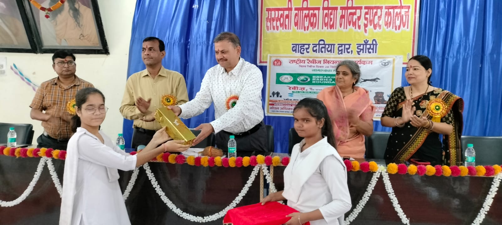 झांसी। मुख्य चिकित्सा अधिकारी झांसी डा0 सुधाकर पाण्डेय के निर्देशन में राष्ट्रीय रैबीज नियंत्रण कार्यक्रम के अन्तर्गत जनपद झांसी में विश्व रैबीज दिवस मनाया गया। इसी क्रम में स्वास्थ्य विभाग की टीम द्वारा सरस्वती बालिका इन्टर काॅलेज दतिया गेट झांसी में कक्षा 11-12 के विद्यार्थियों के बीच निबन्ध प्रतियोगिता करायी गयी एवं मुख्य चिकित्सा अधिकारी झांसी डॉ सुधाकर पांडेय की अध्यक्षता में जागरूकता गोष्ठी का आयोजन किया गया। गोष्ठी में चर्चा करते हुए डा0 रमाकान्त स्वर्णकार ने बताया कि दिनांक 28 सितम्बर को प्रतिवर्ष विश्व रैबीज दिवस मनाया जाता है। रैबीज रोग के विषय में लोगों को जागरूक करने, बचाव एवं रोकथाम के तरीकों की जानकारी जन सामान्य तक पहुंचाने के लिए बच्चे बहुत अच्छा माध्यम होते हैं। अतः भारत सरकार द्वारा निर्देश दिये गये कि विद्यालय में प्रतियोगिता, हैल्थ टाॅक आदि कार्यक्रम आयोजित कर छात्र छात्राओं के माध्यम जागरूकता लायी जाए। पब्लिक हैल्थ स्पेशलिस्ट डा0 उत्सव राज ने रैबीज रोग, लक्षण, कारण एवं बचाव पर प्रकाश डालते हुए बताया कि कुत्ते बिल्ली, बन्दर व जंगली जानवरों के काटने से रैबीज रोग होता है। कुत्ते में यदि रैबीज वायरस है तो जिस व्यक्ति को कुत्ते ने काटा है उसे रैबीज हो जाता है। रैबीज रोग का कोई इलाज नहीं हे एवं मृत्यु दर 100 प्रतिशत है। कुत्ता काटने के बाद शीघ्र अतिशीघ्र इंजेक्शन लगवाना जरूरी है। यह इंजेक्शन कुत्ता काटने के 0 दिन, 3 दिन, 7 दिन एवं 28 वें दिन लगाये जाते हैं। डा0 विजयश्री शुक्ला स्वास्थ्य शिक्षा अधिकारी ने बताया कि रैबीज रोग का इलाज न होने तथा 100 प्रतिशत मृत्यु दर होने के कारण रैबीज रोग के प्रति लोगों की जागरूकता अत्यन्त आवश्यक है। यदि कुत्ता काट ले तो काटे गये स्थान/घाव को साबुन और बहते पानी से 15 मिनट तक धोना चाहिए। घाव पर मिर्च, सरसों का तेल इत्यादि अन्य कोई पदार्थ नहीं लगाना चाहिए। शीघ्र अतिशीघ्र चिकित्सालय जाकर इंजेक्शन लगवाना चाहिए तथा चिकित्सक द्वारा बताये गये निर्धारित शेड्यूल के अनुसार पूरे इंजेक्शन लगवाने चाहिए। सरस्वती बालिका इन्टर काॅलेज दतिया गेट झांसी में कक्षा 11-12 के विद्यार्थियों के बीच आयोजित निबन्ध प्रतियोगिता में कु0 मिनी साहू प्रथम, कु0 कशिश पाल द्वितीय, कु0 नंदिनी मौर्य तृतीय एवं कु0 स्नेहा जोशी को सांत्वना पुरूस्कार प्रदान किया गया। इस अवसर पर नोडल अधिकारी डॉ रमाकांत स्वर्णकार, पब्लिक हेल्थ एक्सपर्ट डॉ उत्सव राज, स्वास्थ्य शिक्षा अधिकारी डॉ विजयश्री शुक्ला, चिकित्सा अधिकारी डॉ सतीश चन्द्रा, प्रधानाचार्या सरस्वती बालिका इन्टर काॅलेज दतिया गेट झांसी सुश्री कल्पना सिंह, योतेश सेजवार, दिलीप कुमार सहित विद्यालय की शिक्षिकाएं व स्