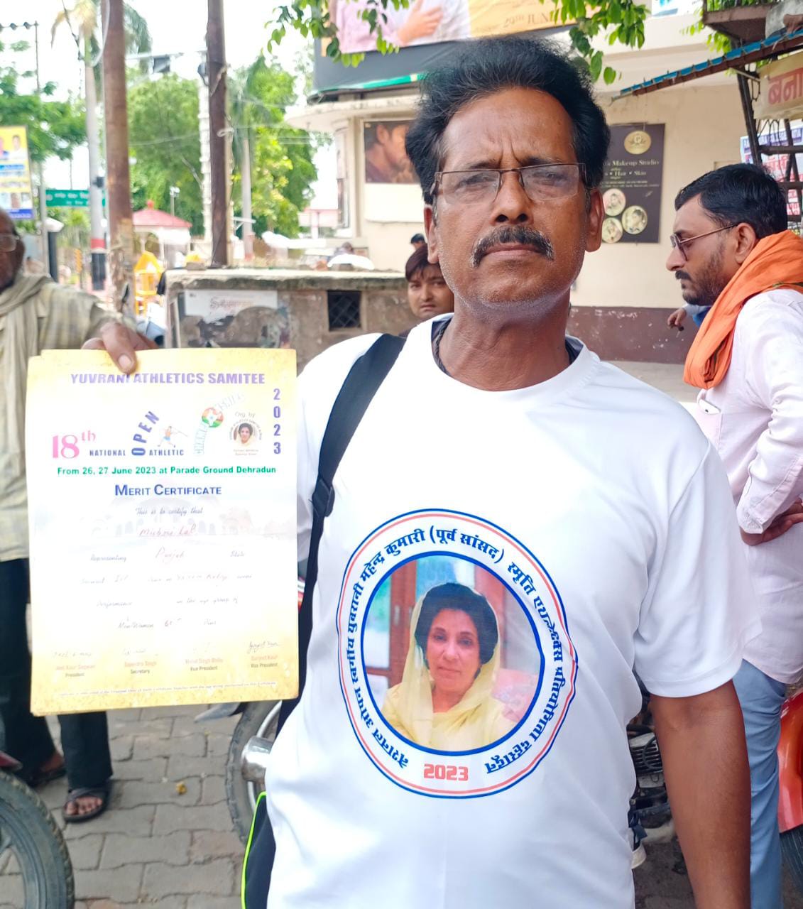 झांसी। देहरादुर में आयोजित की गई ओपन एथलेटिक चैंपियन शिप में झांसी रेलवे से रिटायर्ड इंजीनियर ने एक गोल्ड और दो कांस्य पदक जीत कर झांसी का नाम रोशन कर दिया।प्रेमनगर क्षेत्र के खातिबाब मंदिर के पास रहने वाले मिश्री लाल झांसी में रेलवे में इंजीनियर पद से रिटायर्ड हो चुके है। अभी हाल ही में उत्तराखंड के देहरादून में 26 ओर 27 जून को आयोजित की गई ओपन एथलेटिक चैंपियन शिप में भाग लिया था। जिसमे उन्होंने एक गोल्ड और दो कांस्य पदक जीत कर झांसी का नाम रोशन किया। मिश्री लाल ने बताया की इसके पहले वह सन 80 में भी गोल्ड जीत चुके है।