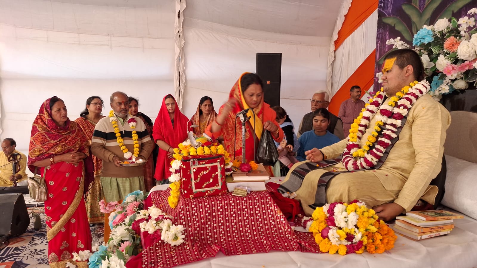 झांसी। आज बंसल कॉलोनी में आयोजित रुद्र महायज्ञ में सुबह के सत्र में प्रातः 8:00 बजे से आहुतियां डाली गई जो 11:30 बजे तक चली श्रीमद् भागवत कथा के सप्तम दिवस की कथा का भागवत पूजन कर शुभारंभ हुआ भागवत पूजन पूर्व विधायक कैलाश साहू सुषमा अनिल खरे,डॉ प्रज्ञा डॉक्टर नीरज श्रीवास्तव गौरी शंकर दुबे सुशील शर्मा अरविंद नगाइच अवधेश निरंजन रानी दुबे ने किया प्रवचन करते हुए श्री हरिवंश दास जी महाराज ने कहा की प्रत्येक व्यक्ति को यह सोचने की आवश्यकता है कि क्या वह मनुष्य है व्यक्ति से मनुष्य बनने की यात्रा मैं विवेक सबसे बड़ी भूमिका निभाता है और विवेक की उत्पत्ति सिर्फ सत्संग करने से होती है जब व्यक्ति के अंदर मुमुक्षता आती है तो जीव अपने कल्याण के विषय में सोचने लगता है और जीव के कल्याण का एकमात्र साधन हरि भजन है किसी भी कर्म को करते हुए भगवान को भजने से आपकी बुरे कर्म में प्रवृत्ति अपने आप समाप्त हो जाती है और आप सत्कर्म के मार्ग पर चलने लगते हो जिससे आपका व आपके परिवार का कल्याण होने से कोई नहीं रोक सकता आपका प्रत्येक क्रिया को कराने वाला भगवान है आप तो सिर्फ कठपुतली की तरह नाचते रहते हो भागवत कथा में प्रवेश करते हुए भगवान के सभी विवाहों के प्रसंग सुदामा चरित्र सुदामा कृष्ण मित्रता 11वें और 12वें स्कंद की कथाओं का सुंदर वर्णन किया अंत में भागवत की आरती झांसी विकास के उपाध्यक्ष आलोक यादव मैथिली मुद्गल रमाकांत तिवारी अपूर्व शर्मा राकेश तिवारी अनिल अडजरियाअंशुल त्रिपाठी ने की सप्त दिवसीय भागवत सप्ताह का संचालन राष्ट्रभक्त संगठन के केंद्रीय अध्यक्ष अंचल अर्जरिया ने व आगंतुकों का आभार संजय दुबे ने व्यक्त किया।
