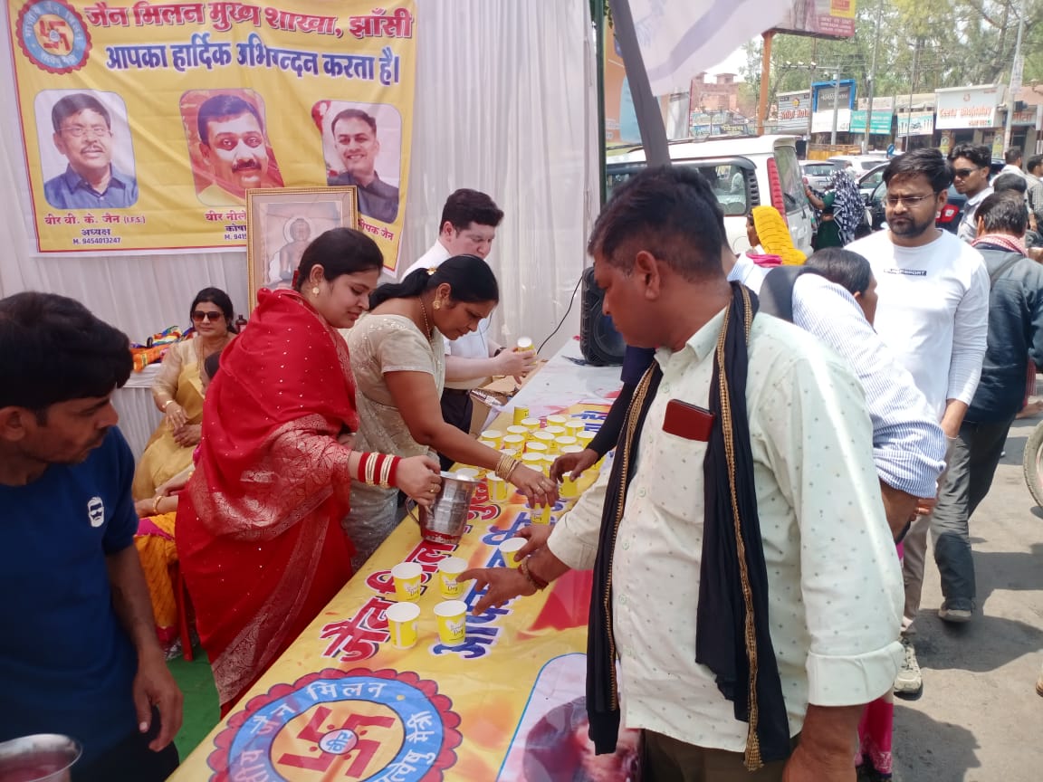 झांसी। महावीर स्वामी जी के जन्मोत्सव को जैन समाज ने कई कार्यक्रम आयोजित कर बड़े धूमधाम से मनाया। इसी क्रम में इलाईट चौराहे पर शरबत वितरण किया गया। गुरुवार को श्री 1008 महावीर स्वामी के जन्म कल्याण महोत्सव पर भारतीय जैन मिलन मुख्य शाखा झांसी के तत्वावधान में इलाईट चौराहे पर कैंप लगाकर भीषण गर्मी में राहगीरों को शरबत वितरण किया। इस दौरान शाखा के पदाधिकारियों ने बताया कि भगवान महावीर स्वामी जी का उपदेश था अहिंसा परमो धर्मा। हम सभी को उनके इसी उपदेश पर चलना चाहिए। पशु संरक्षण के लिए जीव हत्या बंद होनी चाहिए, साथ ही पर्यावरण को बचाने के लिए हम सभी को कार्य करना चाहिए।
