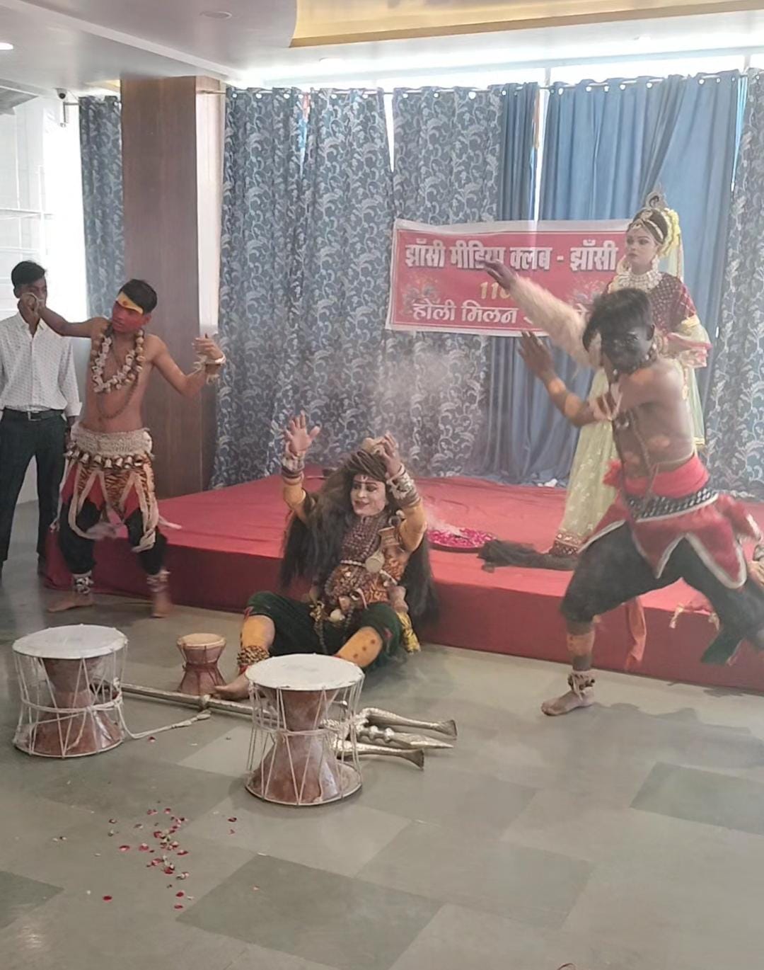 झांसी। झांसी मीडिया क्लब के ग्यारहवें होली मिलन समारोह में मथुरा वृन्दावन से आए कलाकारों द्वारा शिव तांडव ओर राधा कृष्ण की होली ने शमा बांध दिया। जिसमें सैकड़ों पत्रकार मौजूद रहे ओर एक दूसरे को शुभकामनाएं दी। गुरुवार को स्थानीय होटल में झांसी मीडिया क्लब के तत्वावधान में अध्यक्ष मुकेश वर्मा के नेतृत्व में आयोजित होली मिलन समारोह में मथुरा वृन्दावन से आई ललित कलाकार की टोली ने शिव तांडव, शिव आराधन, राधा कृष्ण की होली की सुंदर प्रस्तुति देकर सभी का मन मोह लिया। इस दौरान वरिष्ठ पत्रकारों ने आज के समय में चुनौतियों से जूझ रही पत्रकारिता के विषय पर भी चर्चा की। इस दौरान समाजसेवी संदीप सरावगी, वरिष्ठ पत्रकार रामगोपाल शर्मा, राम सेवक अड़जरिया, महेश पटेरिया, शीतल तिवारी, राम कुमार साहू, दीप चंद चौबे, रोहित झा, राजेश शर्मा, दिनेश परिहार, मुकेश त्रिपाठी, आरके सेन, अमित साहू, भूपेंद्र रायकवार, रवि शर्मा, विष्णु दुबे, विकास सनाढ्य, श्याम राजपूत, भरत कुशलश्रेष्ठ, ओम प्रकाश परिहार, भूपेंद्र रायकवार, हिमांशु पाण्डेय, राहुल कोस्टा, मोहम्मद आफरीन, नईम खान, साजिया खान, आसरा एनजीओ से बंटी शर्मा, प्रभात साहनी, पंजक रावत, संजू गोस्वामी, सुल्तान आब्दी, धर्मेंद्र, एस एस शिवहरे,अख्तर खान, विमल भाई, हरिओम कुशवाह, विजय कुशवाह, श्याम रायकवार, राजीव सक्सेना, पारस शर्मा , वसीम शेख, तोसिफ, मनीष अली, मोहम्मद शेफ, कुंदन सोलंकी, महेंद्र राज, राम किशन अकेला जी, प्रमेंद्र सिंह, अतुल वर्मा, शेख आजाद, राजेश शर्मा, इरशाद खान, मुकेश तिवारी, श्याम राजपूत,बृजेंद्र खरे, रवि साहू, बट्टा गुरु, राजेश चौरसिया, बृजेश साहू, अभिनय अग्रवाल गोलू, गौरव साहू, वासु, राहुल उपाध्याय, हरिकृष्ण चतुर्वेदी जी, मुकेश तिवारी, दीपक त्रिपाठी, अरविंद, भार्गव, मुकेश तिवारी, मुहम्मद कलाम कुरैशी, सहित सैंकड़ों पत्रकार मौजूद रहे।