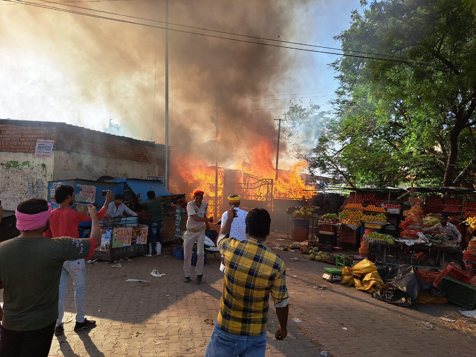 झांसी। शर्ट सर्किट से फल मंडी में स्थित तीन दुकानों में लगी भीषण आग से लाखों कीमत का माल जलकर राख हो गया। घटना की सूचना मिलते ही नवाबाद थाना सहित फायर बिग्रेड की टीम मौके पर पहुंची और आग को काबू में करने का प्रयास शुरू कर दिया।जानकारी के मुताबिक शहर कोतवाली क्षेत्र के खटीक मोहल्ला निवासी अरविंद, राकेश तथा मंडी रोड शांति भवन के पास निवासी मनोज की फल मंडी में फल की तीन आड़त है। आज दोपहर अचानक तीनो दुकानों से धुआं निकलने लगा। धीरे धीरे धुआं भयंकर रूप से आग में तब्दील हो गई। आग का भयंकर रूप देख वहां भगदड़ मच गई। आनन फानन में घटना की सूचना पुलिस ओर फायर बिग्रेड को दी गई। सूचना पर पहुंची पुलिस ओर फायर बिग्रेड ने बड़ी मशक्कत के बाद आग पर काबू पाया। लेकिन तब तक तीनो दुकानों में रखा करीब आठ से दस लाख कीमत का माल जलकर राख हो गया।