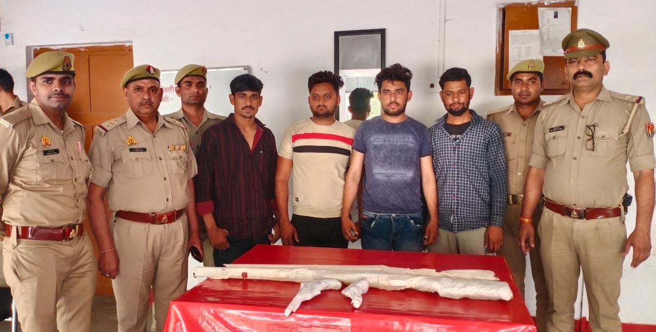 झांसी। एसएसपी राजेश एस के निर्देशन में चलाए जा रहे अपराध और अपराधियों के खिलाफ अभियान के तहत थाना सीपरी बाजार पुलिस को देर रात बड़ी सफलता हाथ लग गई। पुलिस टीम ने घेराबंदी करते हुए चार असलाह तस्करों को गिरफ्तार कर उनके कब्जे से दो फेक्ट्री मैड बंदूक, दो तमंचे और आधा दर्जन से अधिक कारतूस सहित दो बाइक बरामद कर ली है।जानकारी के मुताबिक देर रात एसएसपी राजेश एस के निर्देशन में एसपी सिटी ज्ञानेंद्र कुमार ओर सीओ सिटी राजेश राय के नेतृत्व अपराधियों संदिग्धों की तलाश में चलाए गए अभियान के तहत सीपरी बाजार थाना प्रभारी निरीक्षक संजय शुक्ला, ग्वालियर रोड चौकी प्रभारी श्री प्रकाश दुबे, चमन गंज चौकी प्रभारी शिव शंकर प्रताप तिवारी अपने पुलिस बल सुनील कुमार, दिनेश कुमार, रवि सोनी, मोहम्मद मुंजीर, पंकज कुमार, हर्ष कुमार, के साथ रात्रि में गस्त पर तैनात थे। तभी सूचना मिली की ग्वालियर हाईवे पर रक्सा जाने वाले मार्ग सीमेंट फैक्ट्री के पास दो बाइक पर चार संदिग्ध युवक खड़े हुए है। सूचना पर पुलिस टीम ने मौके पर पहुंच कर घेराबंदी करते हुए चारों युवकों को पकड़ लिया। उनके कब्जे से बरामद बैग के अंदर से पुलिस टीम ने दो फेक्ट्री मैंड डबल बैरल बंदूक, दो 315 बोर के तमंचे तथा सात जिंदा कारतूस बरामद कर लिए। जांच पड़ताल में जानकारी मिली की बरामद की गई बंदूक पर हिमाचल प्रदेश और तमंचों पर बिहार मुंगेर की मोहर लगी हुई है। पुलिस टीम ने पकड़े गए चारों युवकों से पूछताछ की तो उन्होंने बताया की वह लोग असलाह सप्लाई करने का कार्य करते है। यह बरामद हुए असलाह की वह लोग डिलेवरी देने आए थे। उन्होंने अपने नाम ग्वालियर रोड ग्राम सिमराह निवासी मानवेंद्र सिंह यादव, रामपाल, शिवम ठाकुर, बीकेश यादव बताए। पुलिस के मुताबिक पकड़े गए युवक हिमांचल ओर बिहार मुंगेर से असलाह लाकर यहां तस्करी करते थे। अभी पकड़े गए आरोपियों से पूछताछ चल रही है।